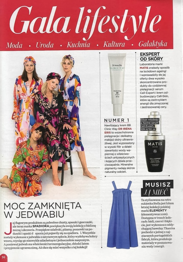 „Moc zamknięta w jedwabiu. Oprócz flagowych produktów jakimi są apaszki, Spadiora powiększyła swoją kolekcję o jedwabne szlafroki, piżamy, poszewki oraz opaski do spania.”