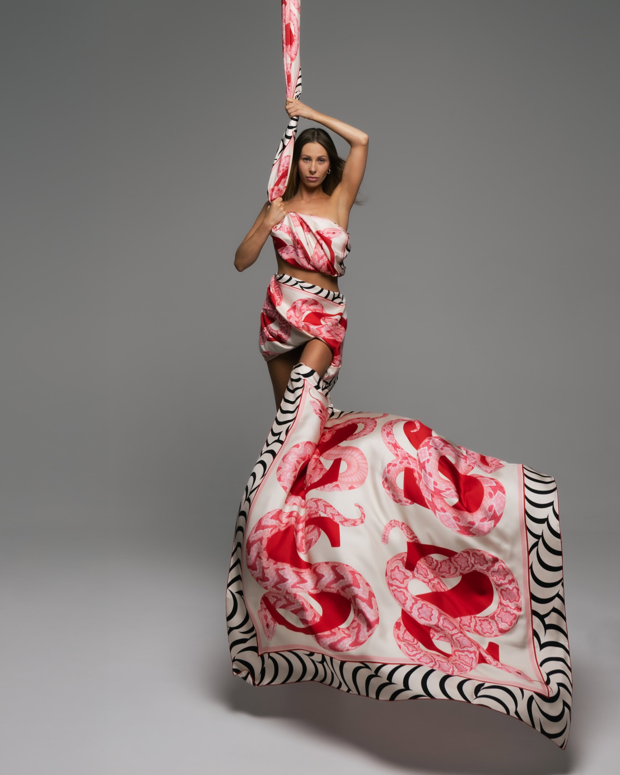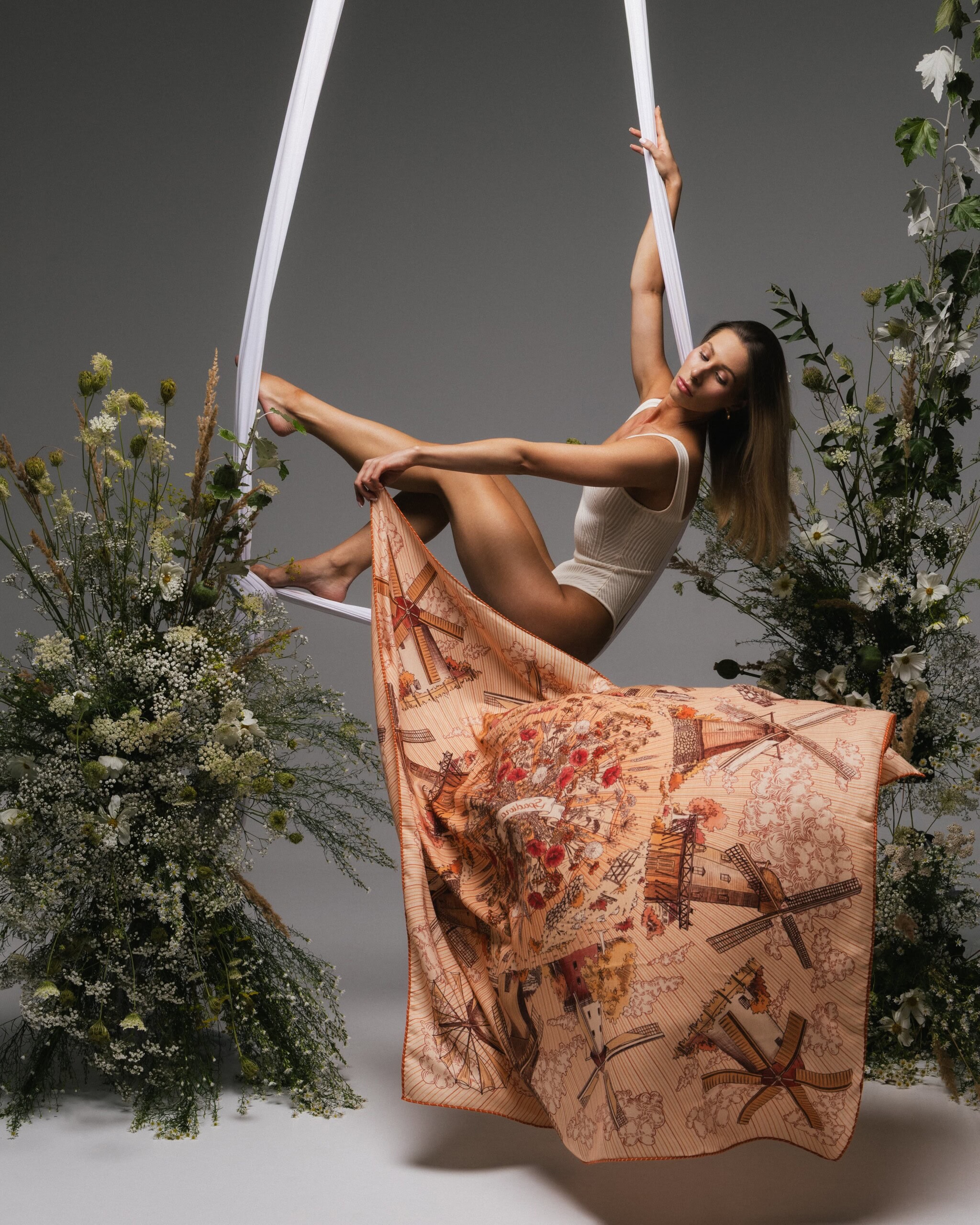 Każdego roku Spadiora tworzy kampanię, która wykracza poza klasyczną sesję zdjęciową. Jest historią. W tym roku jej narratorką została Natalia Zagumna, trenerka aerial jogi, która spektakularnie połączyła siłę z lekkością. Jej ruchy w powietrzu stały się naturalnym tłem dla jedwabnych apaszek, które w kontakcie z wiatrem nabierają życia, zmieniają kształty i każdorazowo opowiadają coś innego.
