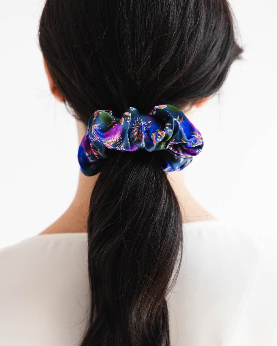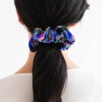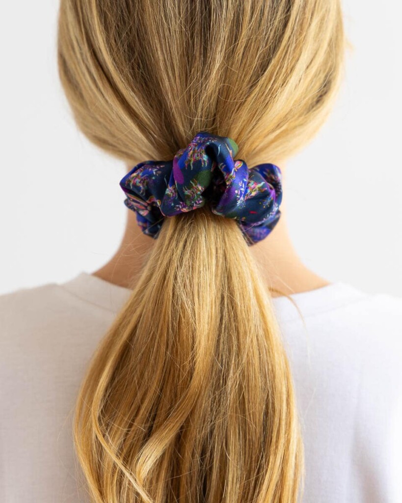 A set of Igaro hair silk scrunchies “Mazurian horse” navy blue