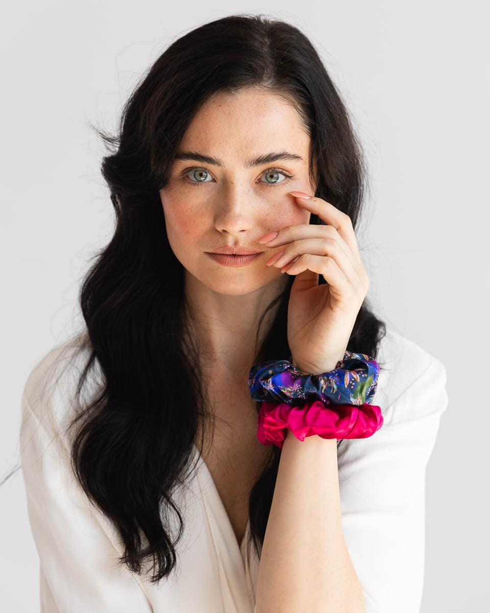 Set of two Igaro silk hairbands is the perfect solution for minimalists. Two completely different silk hairbands will become a great complement to subdued stylizations (hairband with a pattern) or crazy stylizations (single-color hairband). They were created to complement each other, but also to be able to wear them separately. In a larger than before size (height 5 cm) they are a stronger addition than our standard hair elastics.