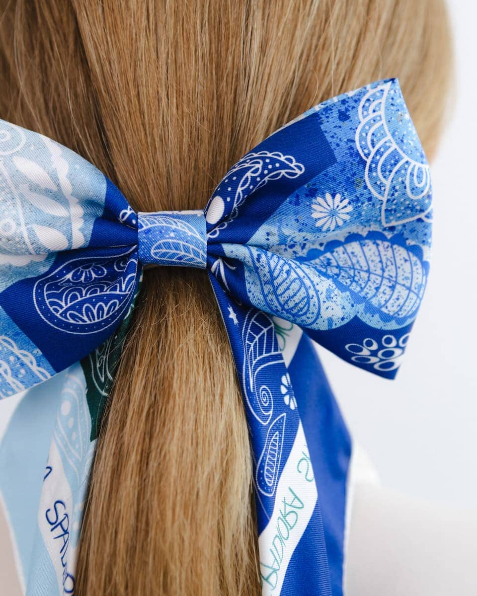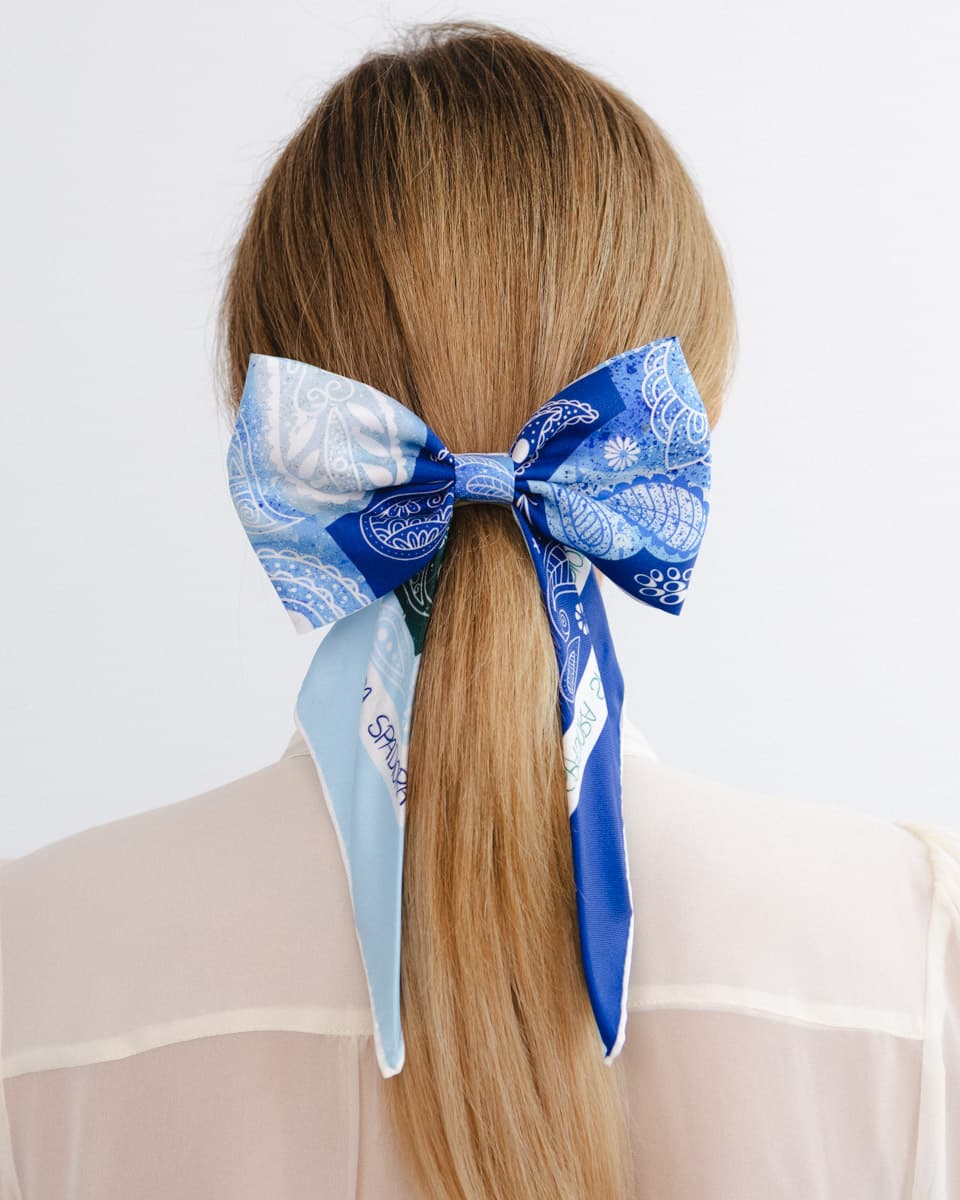 Each bow may differ slightly, as they are made from various parts of Spadiora scarves.