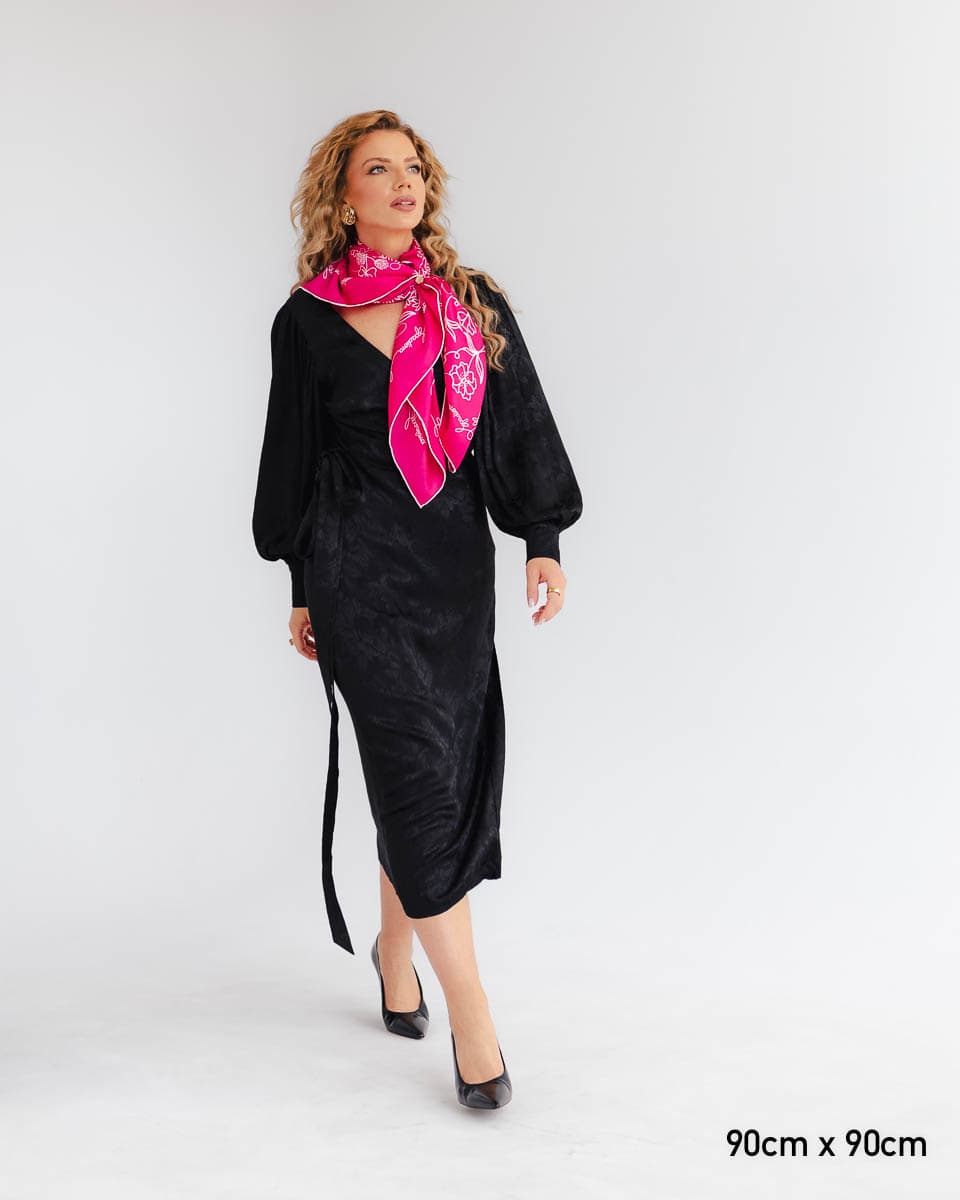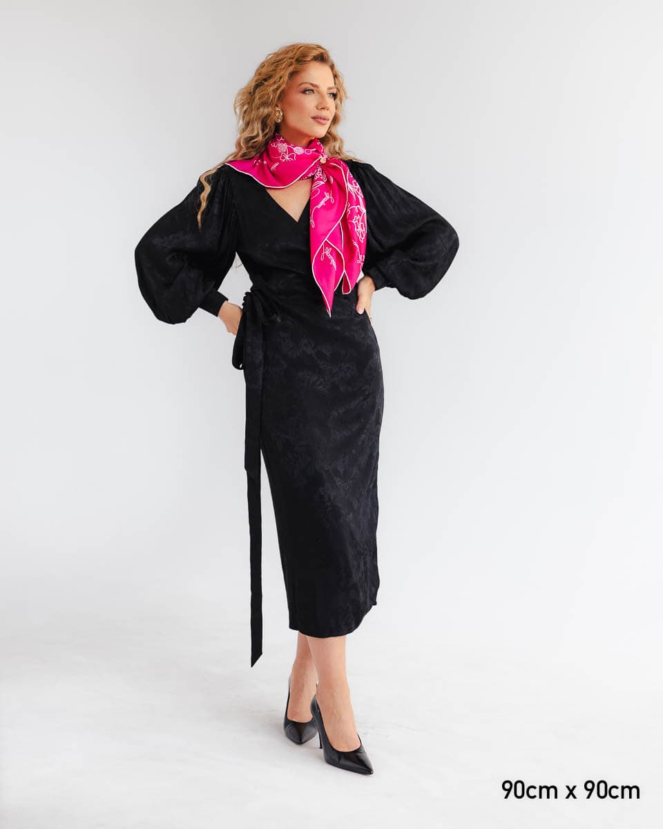 The Carmo dress is a treat for all fans of classic style with a touch of modernity. Made from jacquard viscose, this wrap dress fits every feminine silhouette, highlighting its assets. The timelessness of the cut, combined with the highest quality fabric and craftsmanship, will make you reach for this dress on many occasions. The viscose drapes beautifully and flows around the figure, so the Carmo dress subtly accentuates the bust and waist. The puffed, wide sleeves give it a unique character. The wrap style allows you to adjust the depth of the neckline. It looks great paired with any type of footwear or accessories.