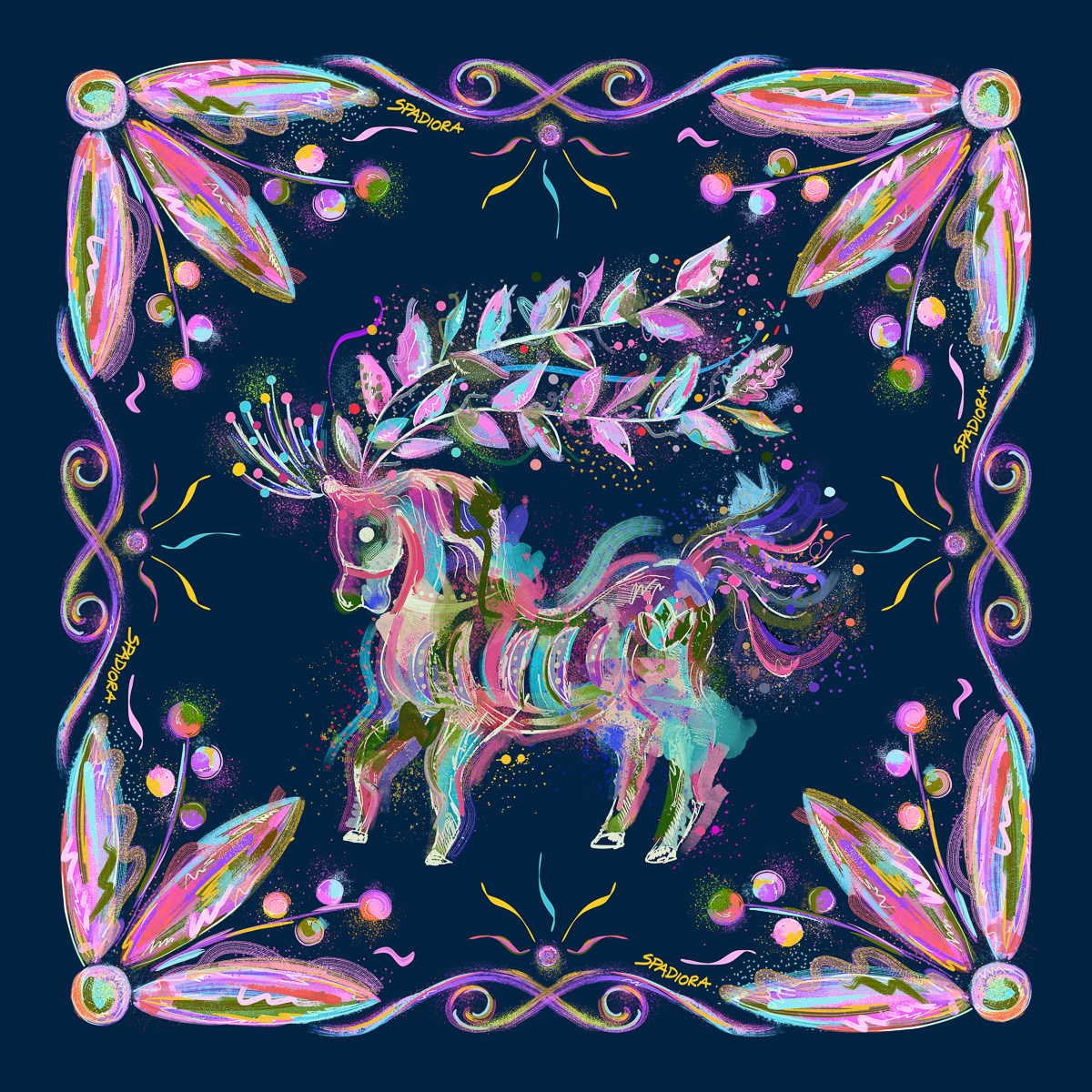 jedwabna apaszka dwustronna Spadiora konik granatowy wzór