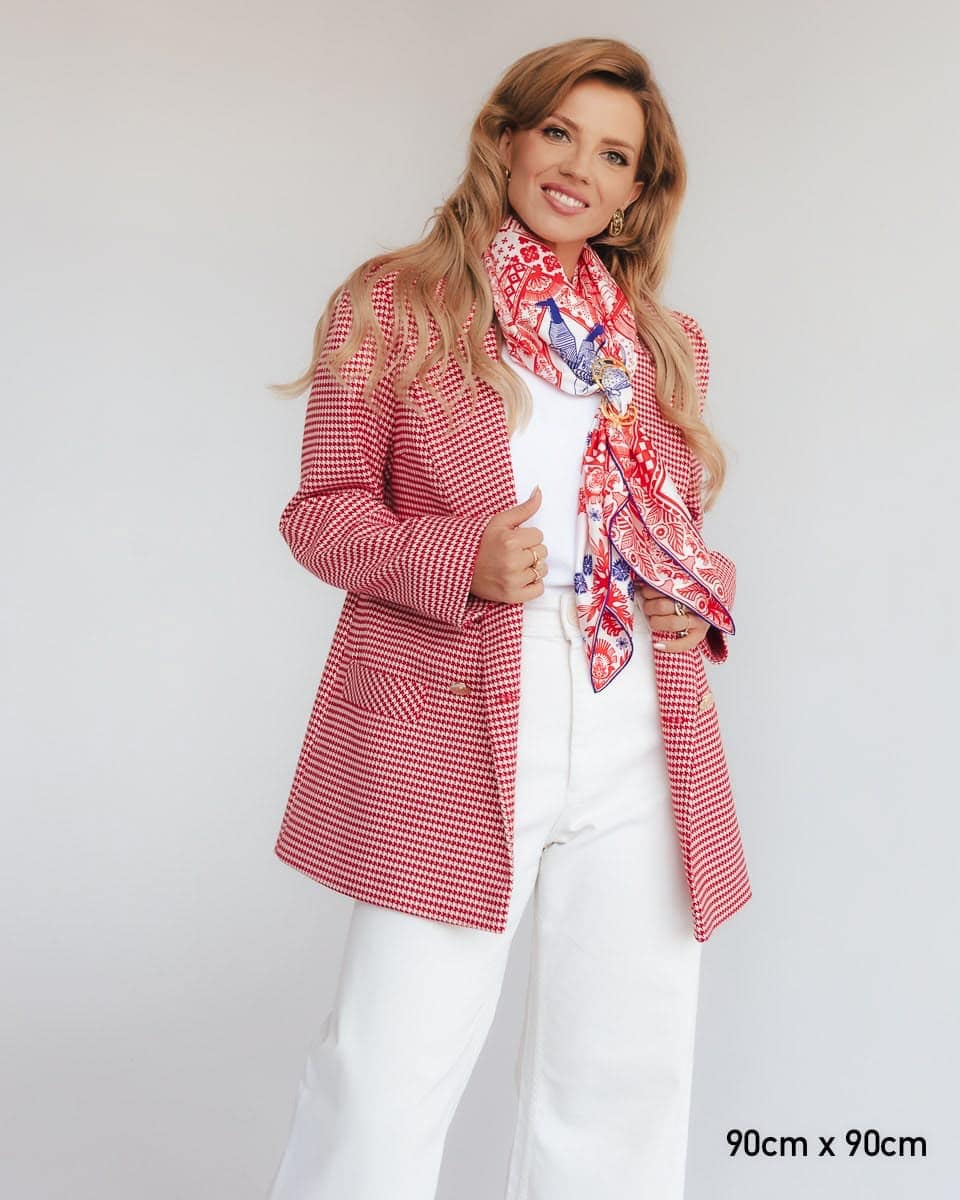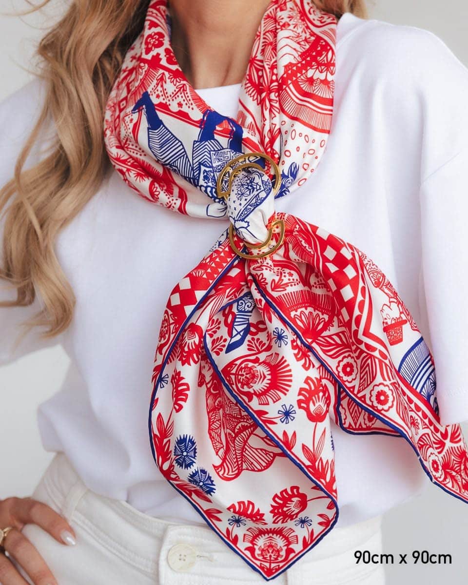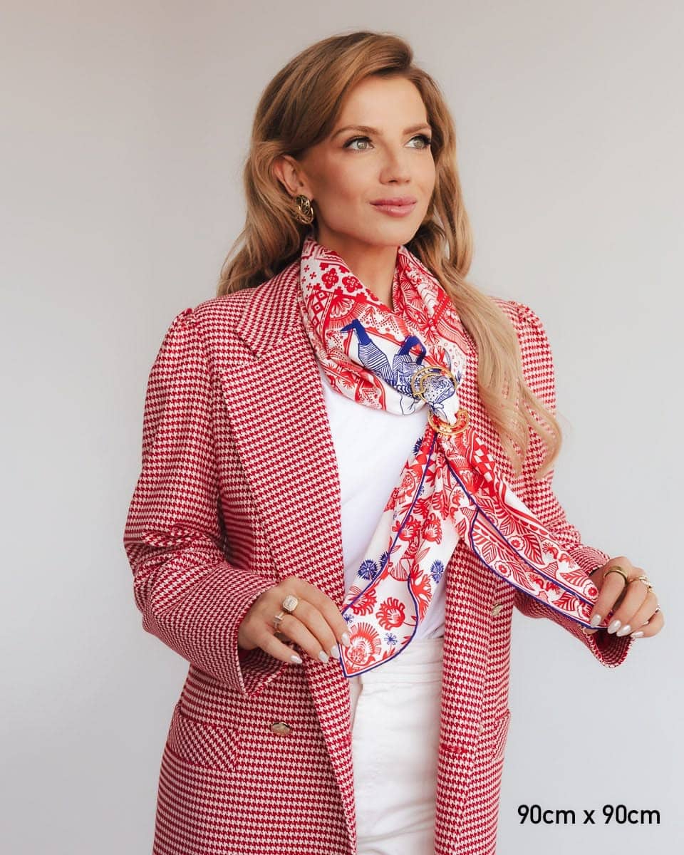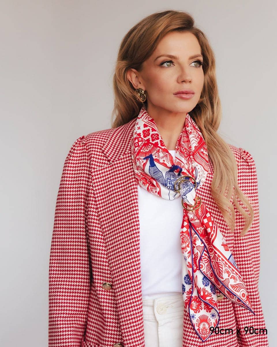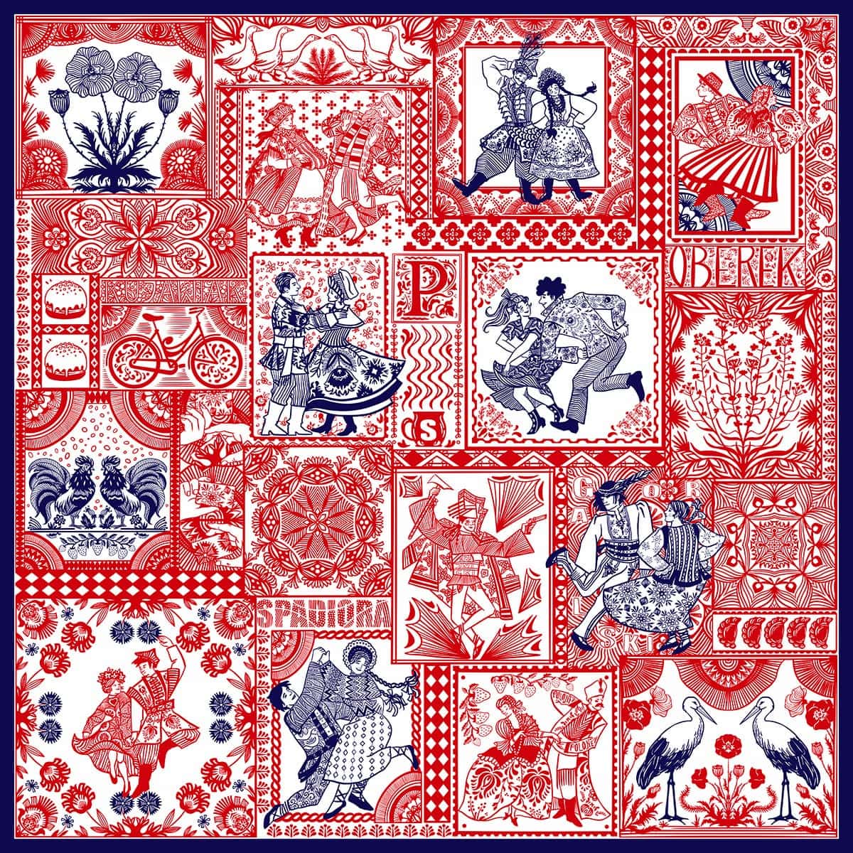 A cheer often used at the end of a dance or during it to liven up the atmosphere and encourage others to join in. This scarf features the most iconic Polish folk dances. The scarf is inspired by Zofia Stryjeńska's graphics with the same title. It’s a celebration of what’s best in us—our ability to have fun, unite, and care for our cultural heritage. Dance has always had a therapeutic effect, allowing the expression of emotions, which is particularly important in dealing with emotional difficulties. We’ve also hidden many symbols associated with our country on the scarf. Long live Polish Folk Dances!