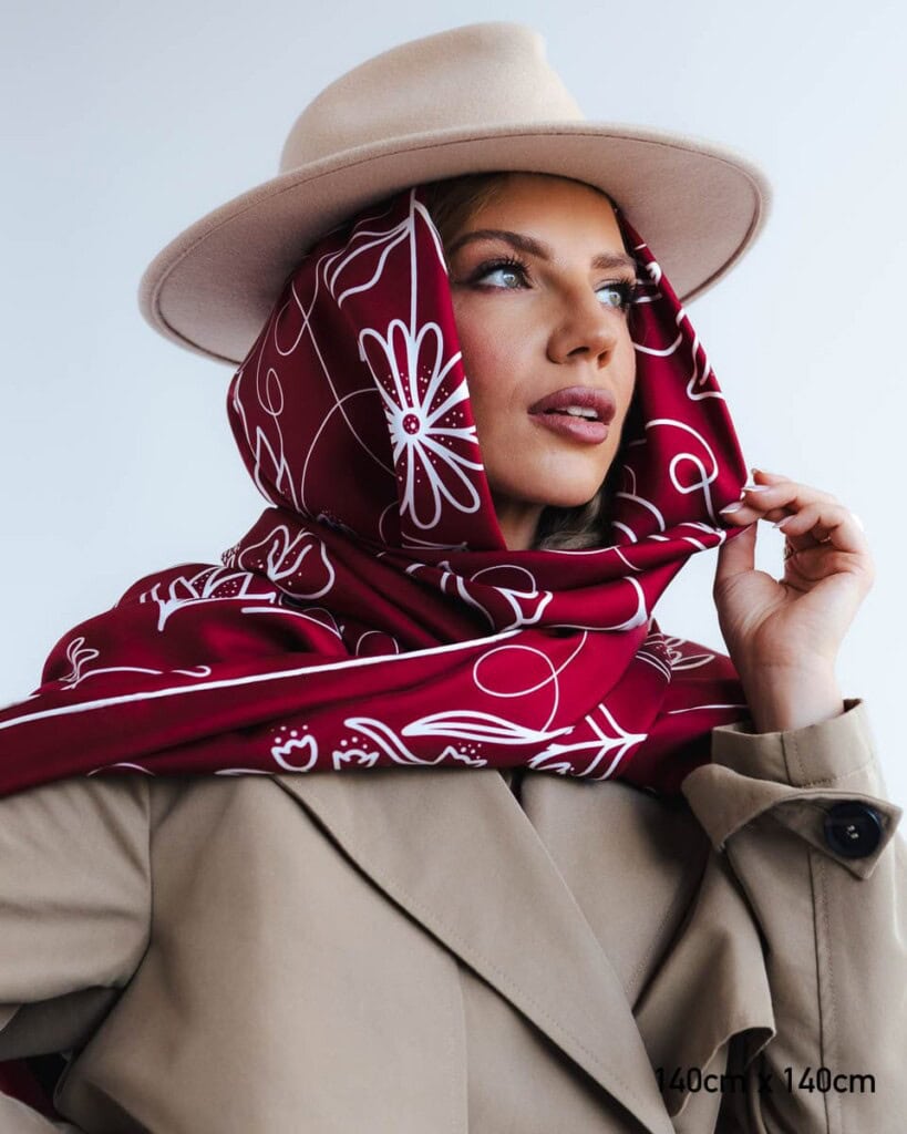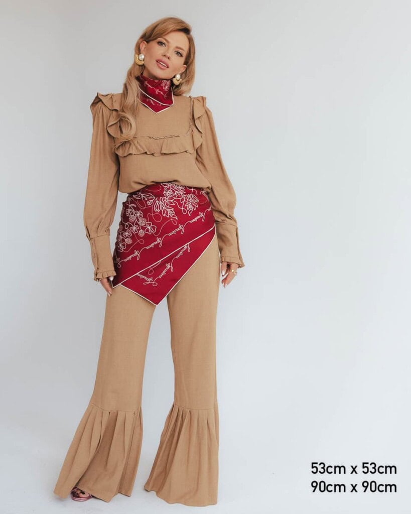 They are beautifully made, silk, fleshy, beautifully arranged in the so-called flower, which I usually do in my hair. Not too stiff, perfect. I had a Gucci scarf, which blew me away only because of the price and the quality was no different from our home-made scarves by Marta and Janek. I recommend something that is created with love, ideas, and Polish financial and energy input.