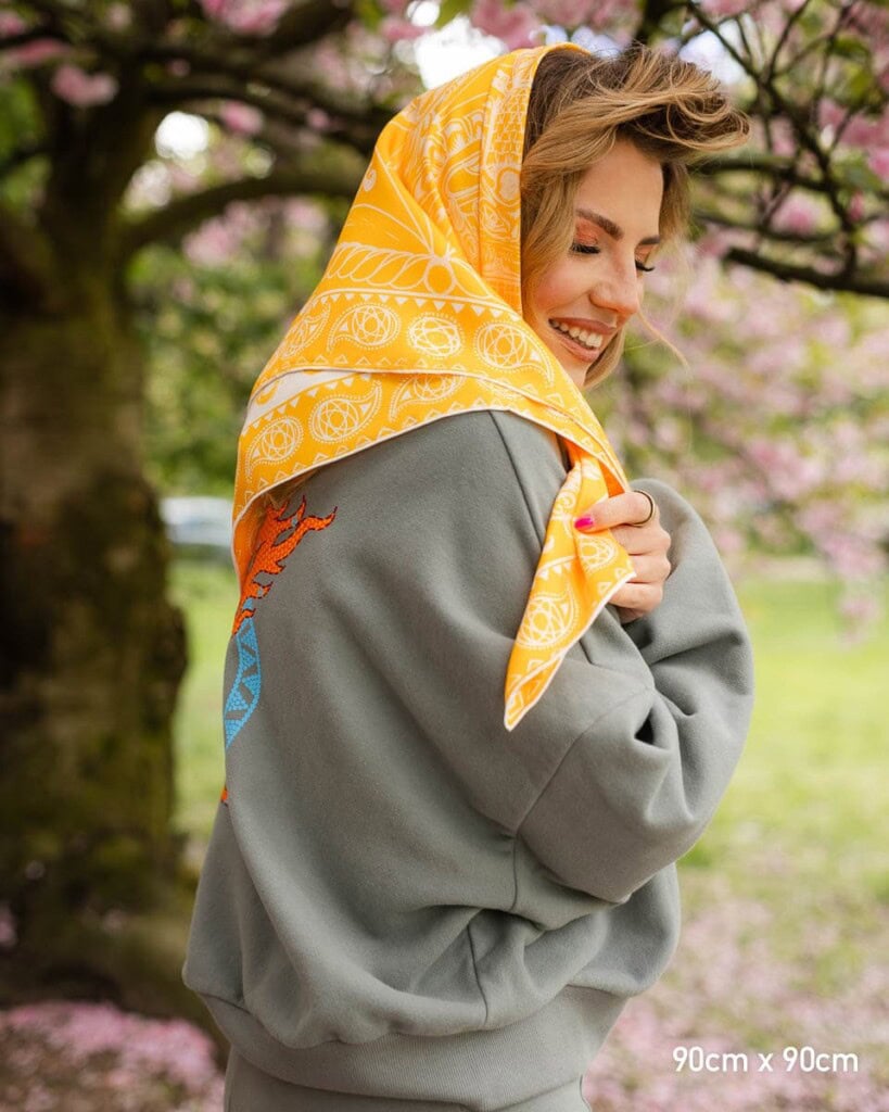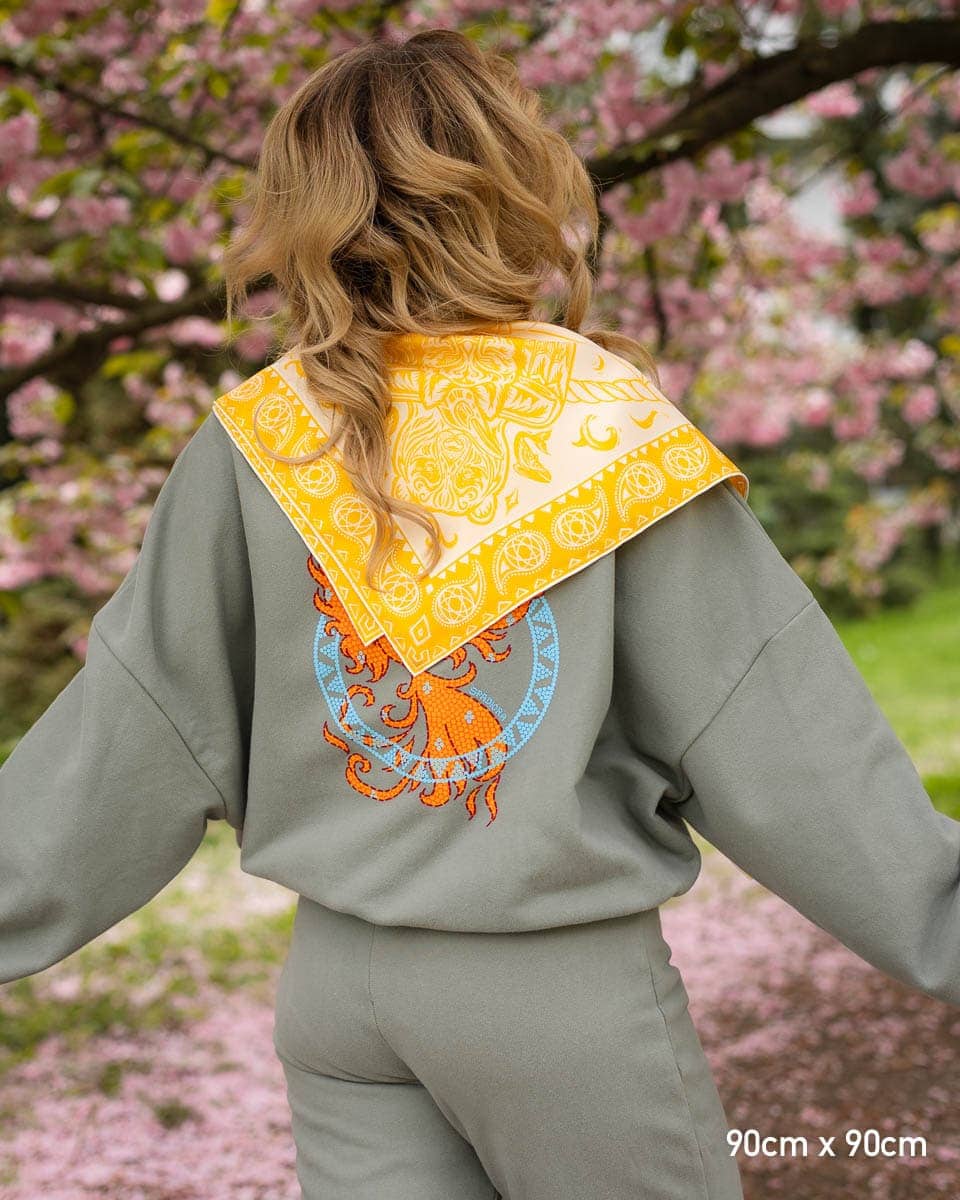 understanding and respect for cultural diversity and the history of various communities.Totems can have spiritual or emotional significance, being sources of strength, inspiration, or a sense of belonging to something greater than ourselves. Therefore, you will find four totemic animals on the scarf, each with specific attributes. The bear symbolizes strength, power, independence, as well as protection and care for the family. It is also associated with the father or masculine energy. The eagle is a symbol of vision, grandeur, freedom, and the spirit of a