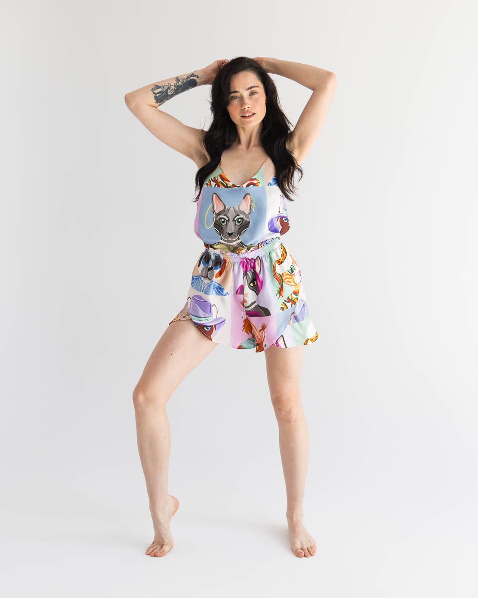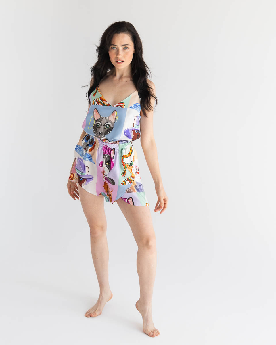 Silk shorts with a satin weave are a true gem in the fashion world. Their short cut is not only comfortable but also extremely stylish. These shorts perfectly combine comfort and elegance, surprising with their unique design.
