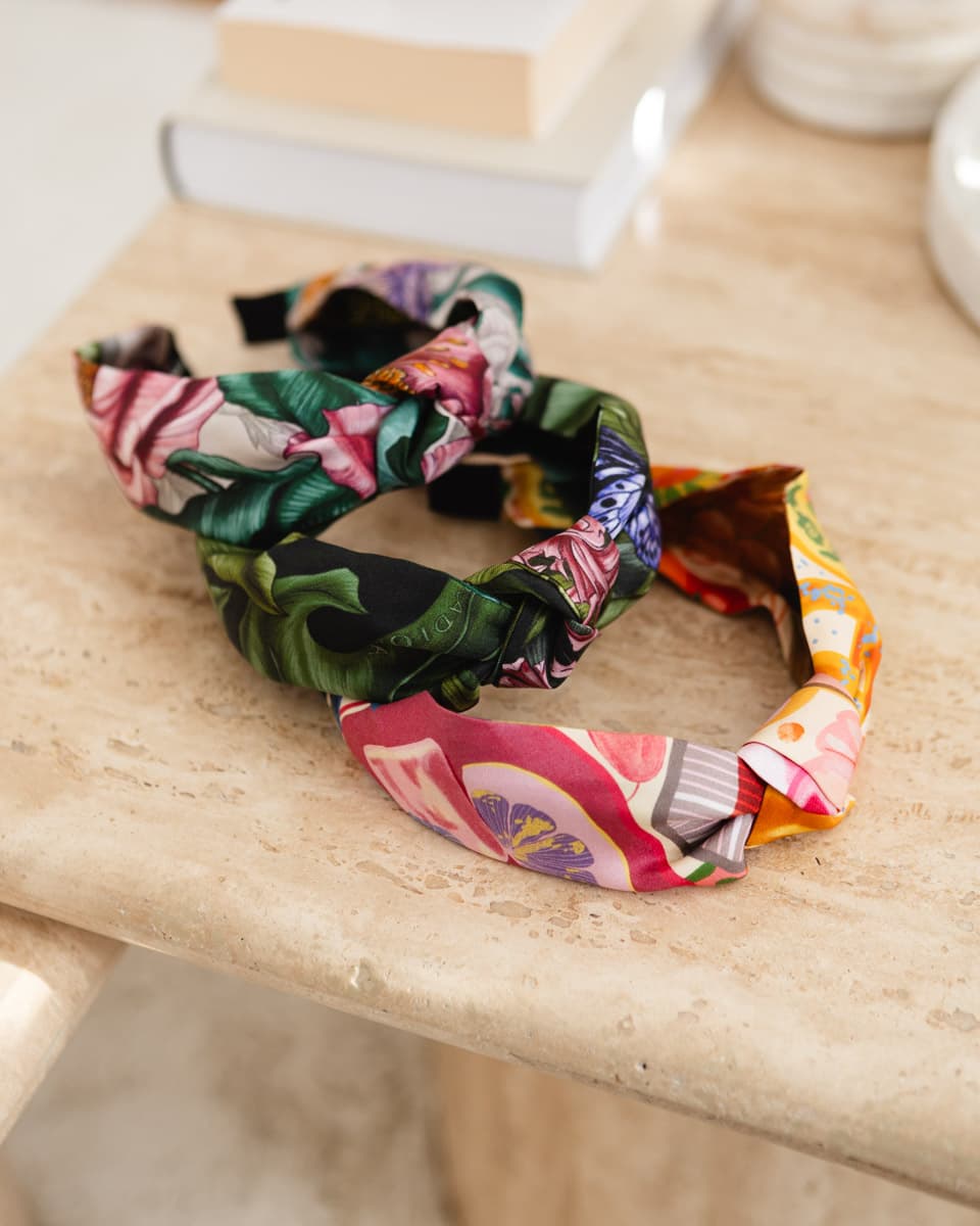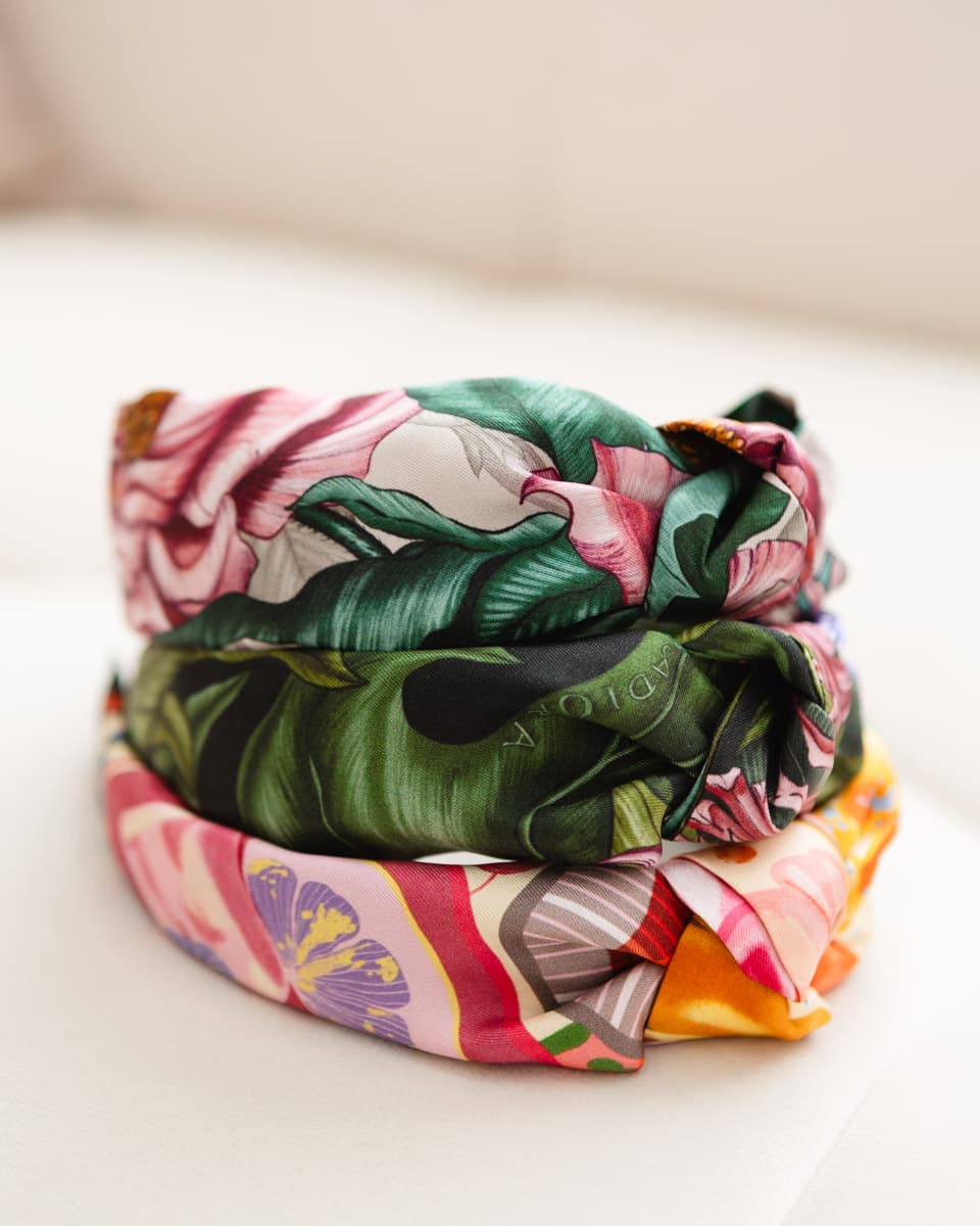 At the request of all those who claim to be all thumbs when it comes to tying scarves, we have created a classic hair band.