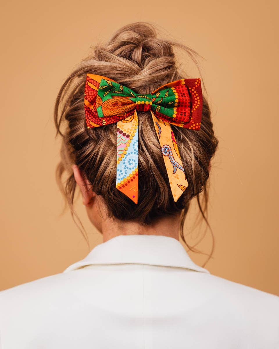 The Silk Hair Bow Papilio is a sophisticated accessory for a woman’s wardrobe that adds elegance to any outfit. Each clip is handmade from fragments of silk scarves, making each piece unique and featuring an individual pattern. The silk bow is a high-quality product made in Poland with attention to every detail in Spadiora’s sewing workshop. The bows may vary slightly from one another because they are made from different fragments of material.