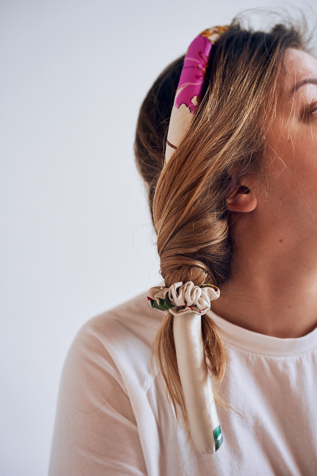 This seemingly classic pattern mentions the topic of maturity, so often marginalized. We like to look at what is beautiful, smooth, young and charming. But we look away when it comes to something mature in its purely naturalistic form. Often wrinkled, faded, tired and wounded by time. That’s why, among the beautiful flowers, leaves and fruits, on our scarf we have hidden maybe the even more beautiful things: mature ones, wanting to explain, that especially nowadays wearing such an “imperfect” scarf is a kind of courage. We want to normalize it and speak out loud about the fact that maturity is beautiful and astonishingly noble.