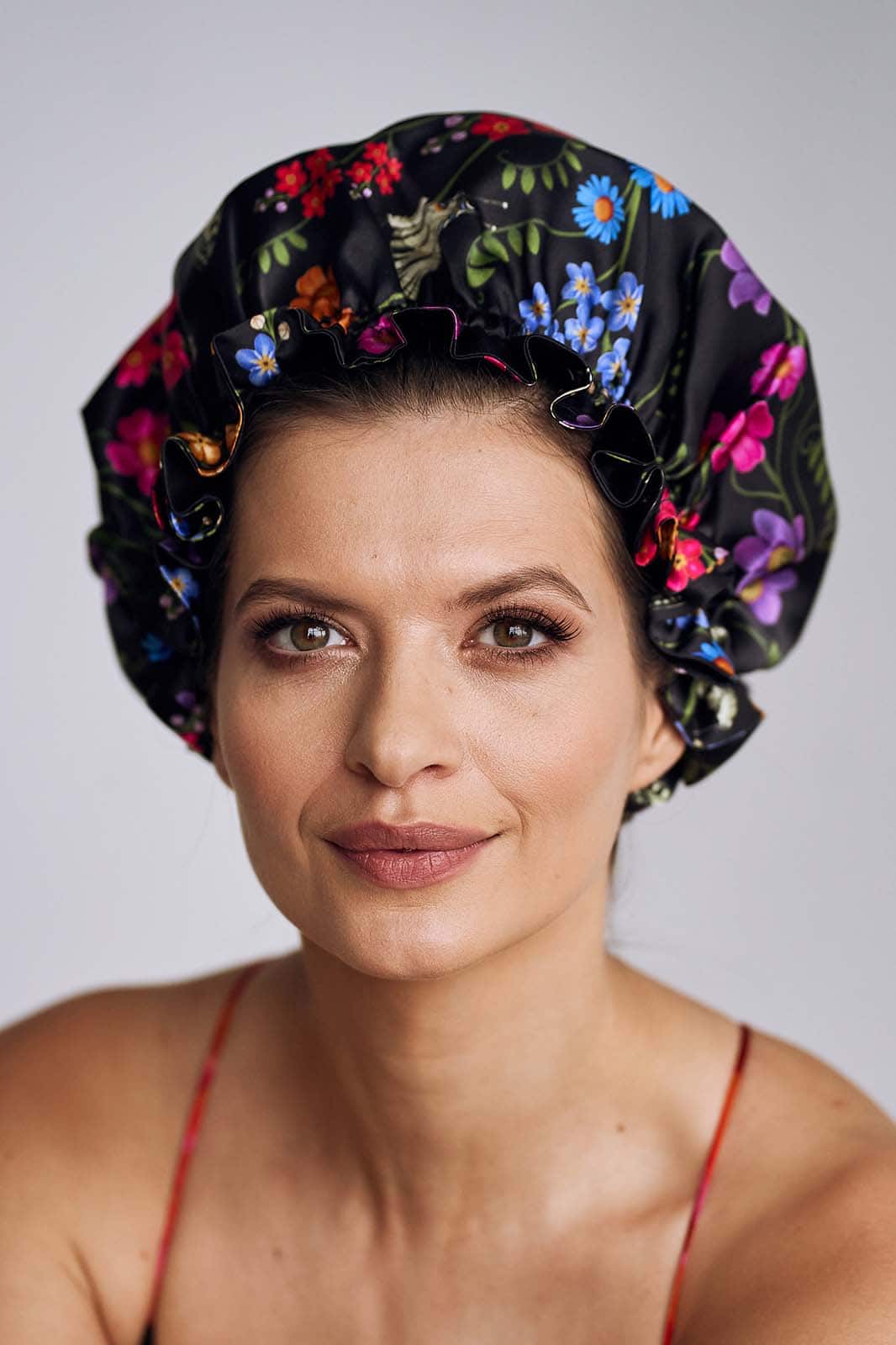Our new PREMIUM sleeping caps have been created with all hair types in mind. Made of natural silk with an even heavier weight (22 momme). This model is double-sided, and the elastic surrounding the entire structure is sewn inside for even greater comfort of use. The cap itself resembles a bathing cap, thanks to which it holds a really lush hair. It will be perfect during sleep, but also during home SPA, bath or make-up, effectively separating the hair from the face. In addition, sleeping in a silk cap every night protects not only your hair but also your hairstyle.