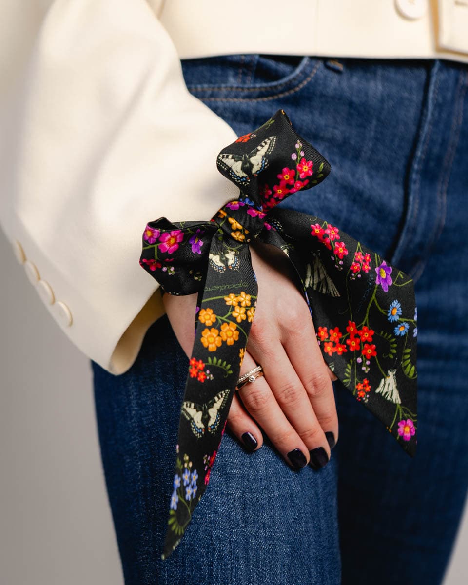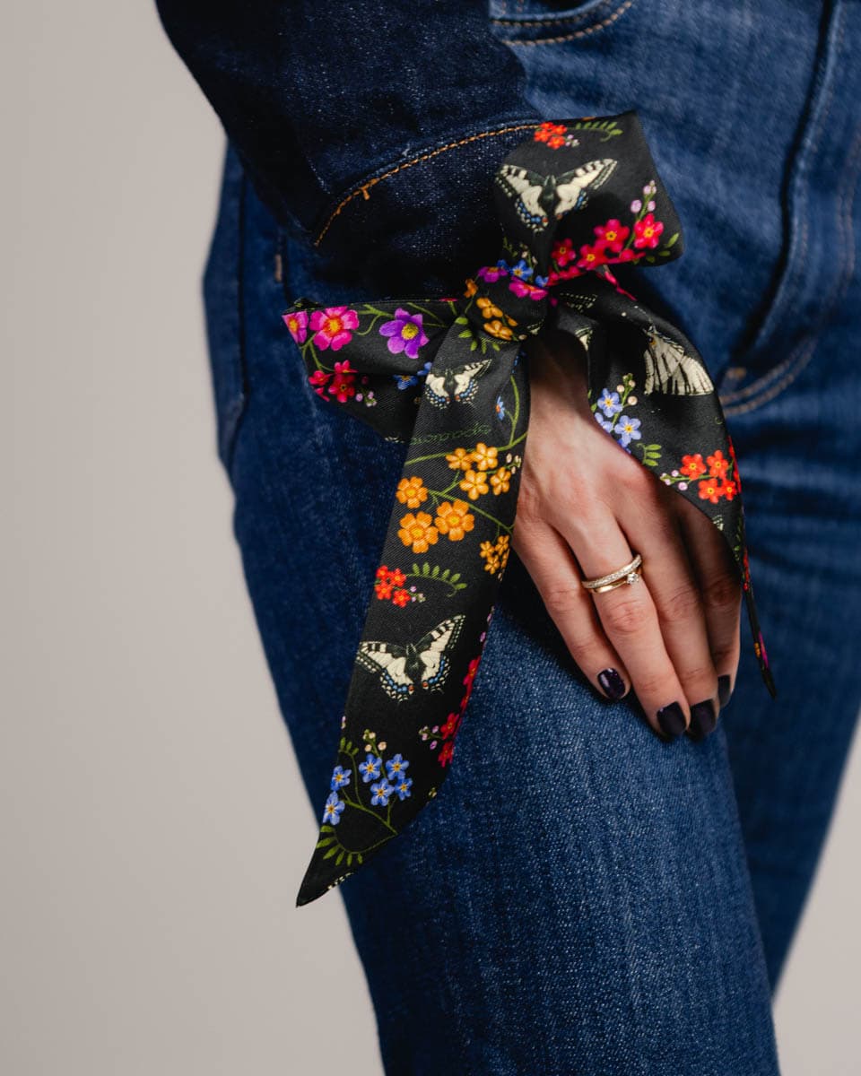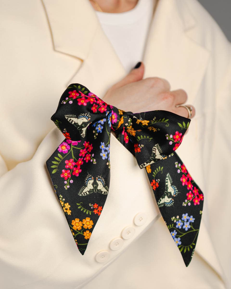 Made of the best quality natural silk with a twill weave, it will add charm to any handbag, hairstyle or shirt.