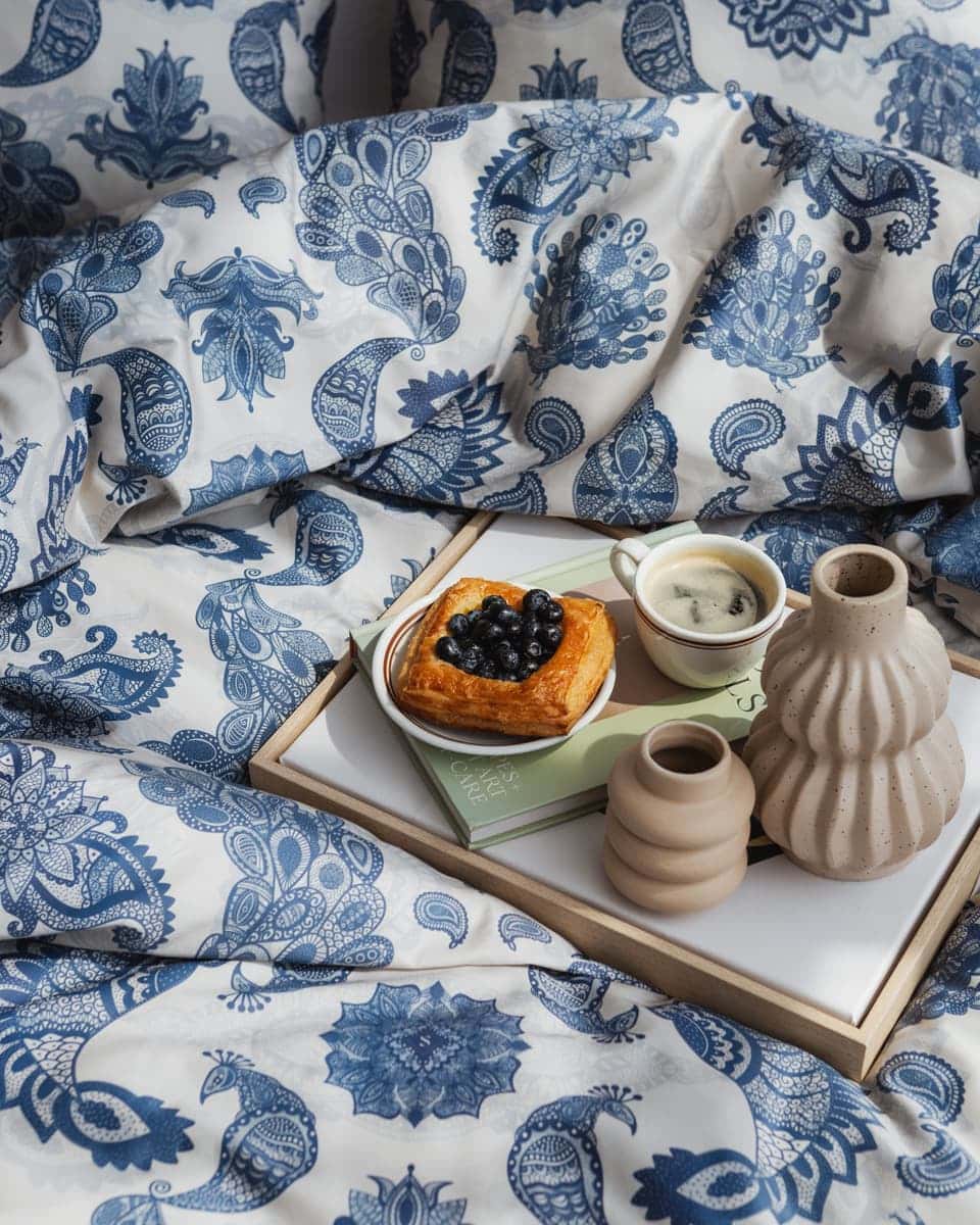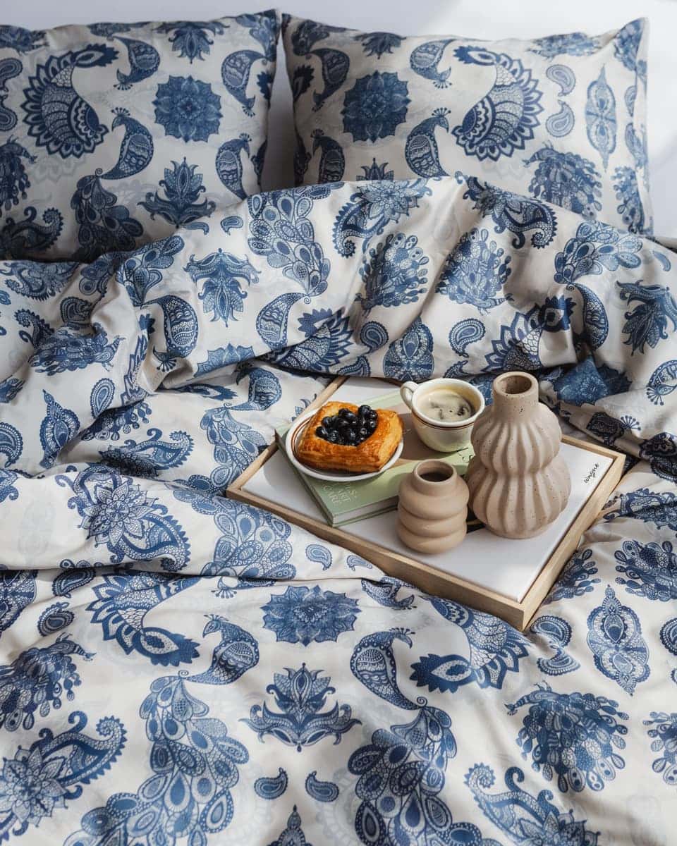This bedding brings the elegance of our iconic silk scarf into the realm of home comfort. The pattern was designed exclusively for Spadiora by talented Polish illustrators and is inspired by the theme of our signature zodiac scarf – reimagined on soft, natural cotton. Made of 100% high-quality cotton, it gently hugs the body and ensures year-round sleeping comfort. Its soft texture and subtle charm bring peace to your evenings and joy to your mornings.