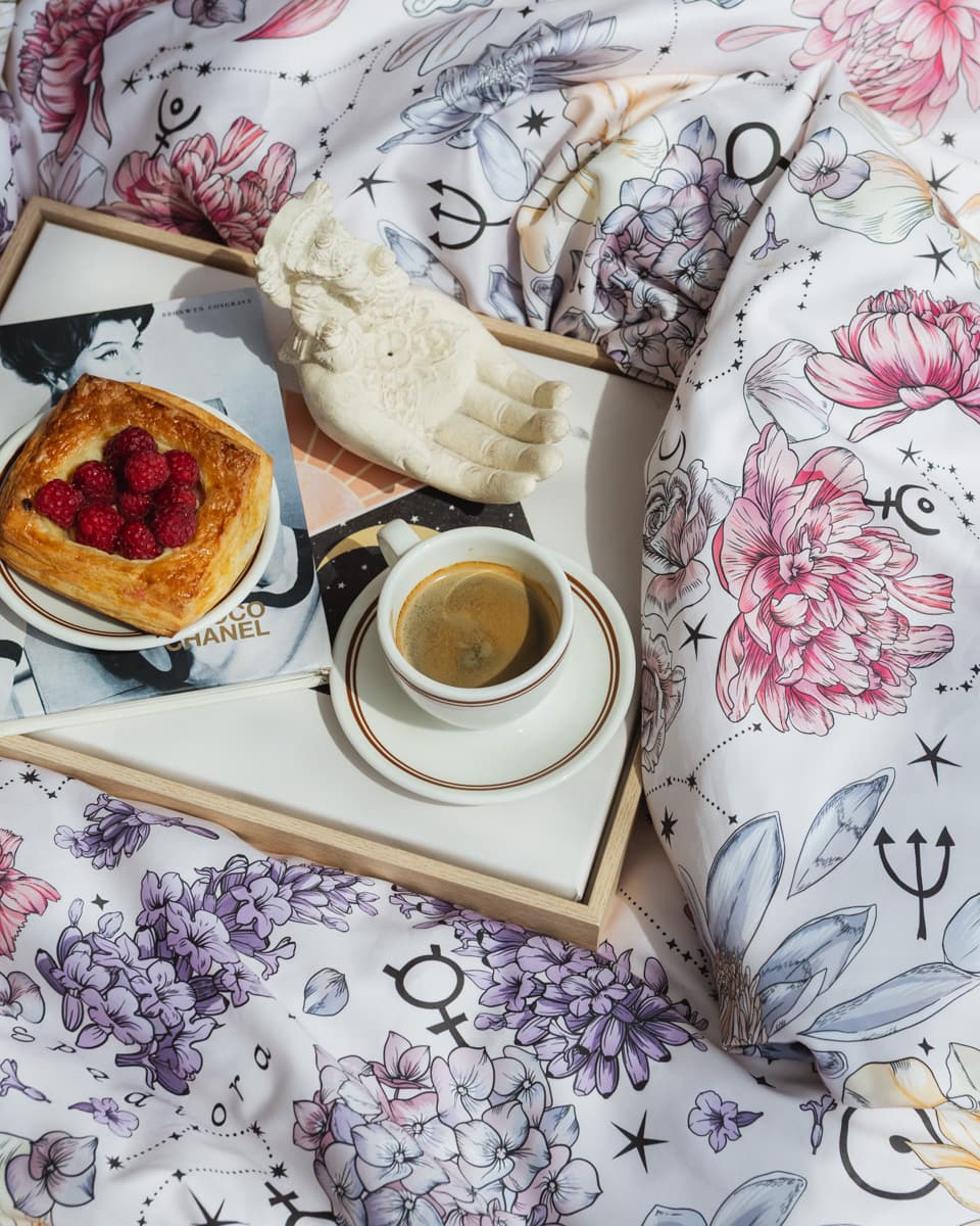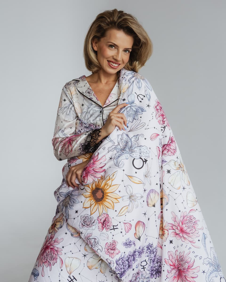 This bedding brings the elegance of our iconic silk scarf into the realm of home comfort. The pattern was designed exclusively for Spadiora by talented Polish illustrators and is inspired by the theme of our signature zodiac scarf – reimagined on soft, natural cotton. Made of 100% high-quality cotton, it gently hugs the body and ensures year-round sleeping comfort. Its soft texture and subtle charm bring peace to your evenings and joy to your mornings.