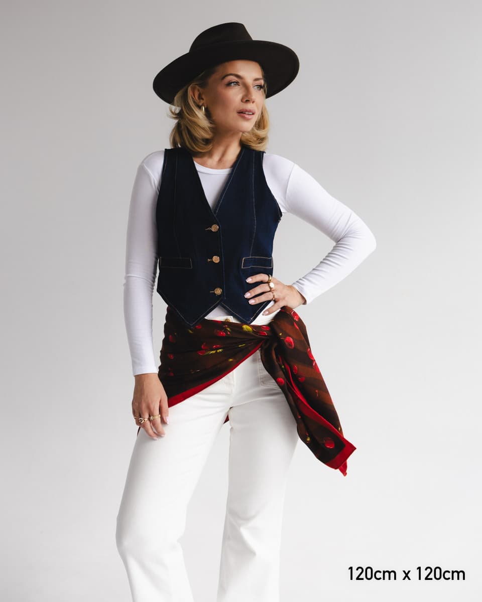 They combine the lightness of silk with the softness and coziness of wool, draping beautifully and wrapping the body naturally. The herringbone weave and hand-rolled edges emphasize their unique character and attention to each and every detail. Created in our iconic patterns, though due to the different fabric composition and weave, the colour intensity may differ slightly from our 100% silk scarves. Perfect for chilly days and summer evenings alike - versatile, stylish, and made to be worn all year round.