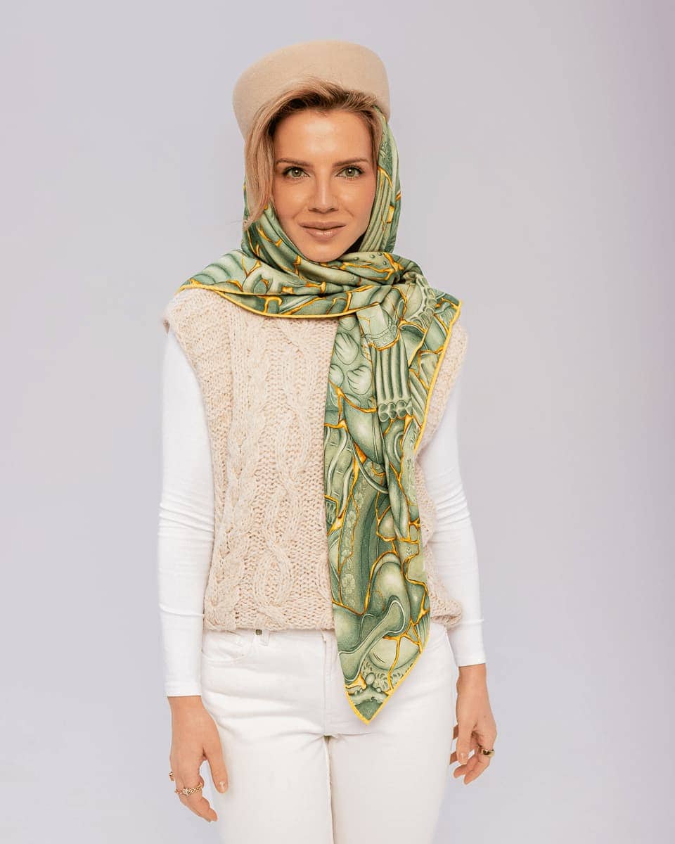 Wool-silk reversible scarf “Kintsugi”