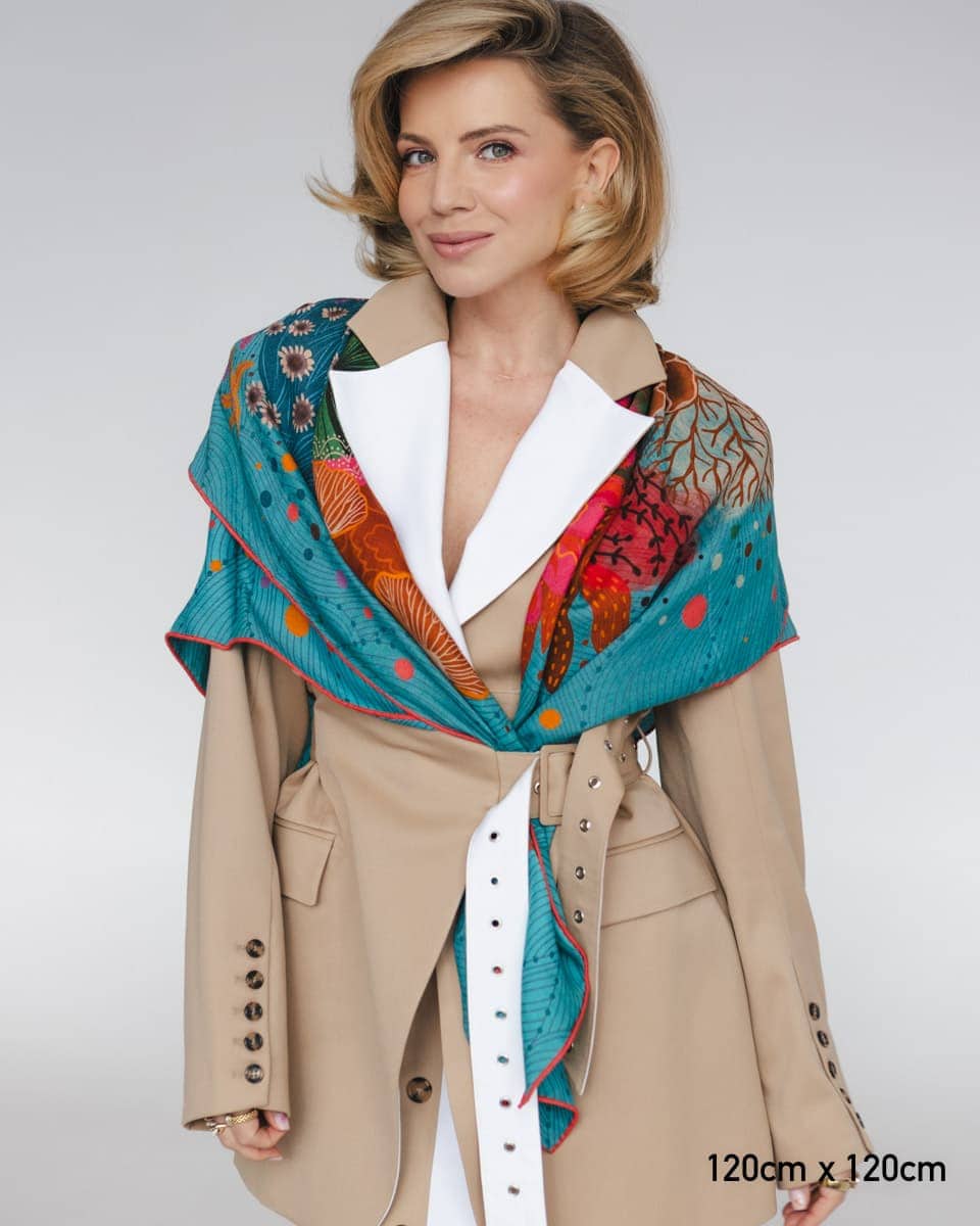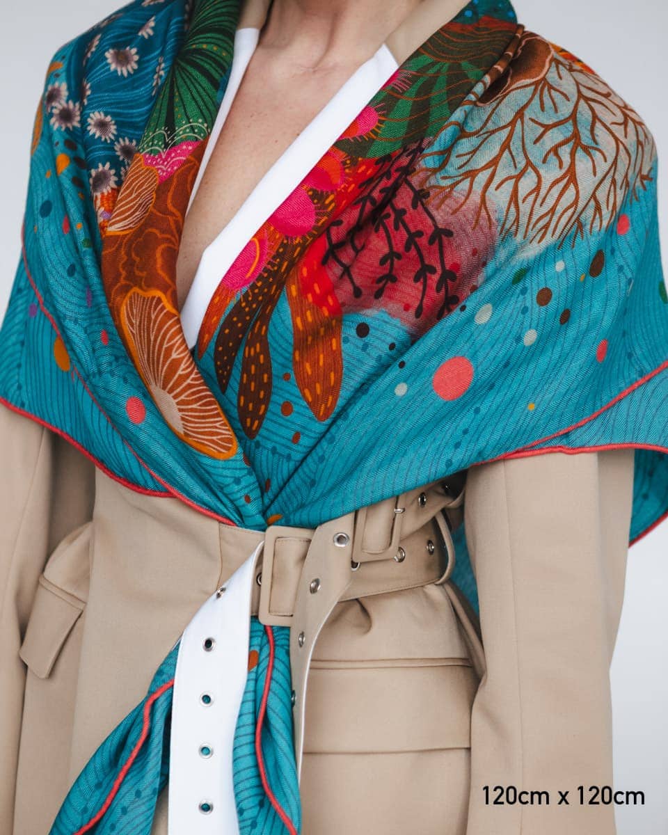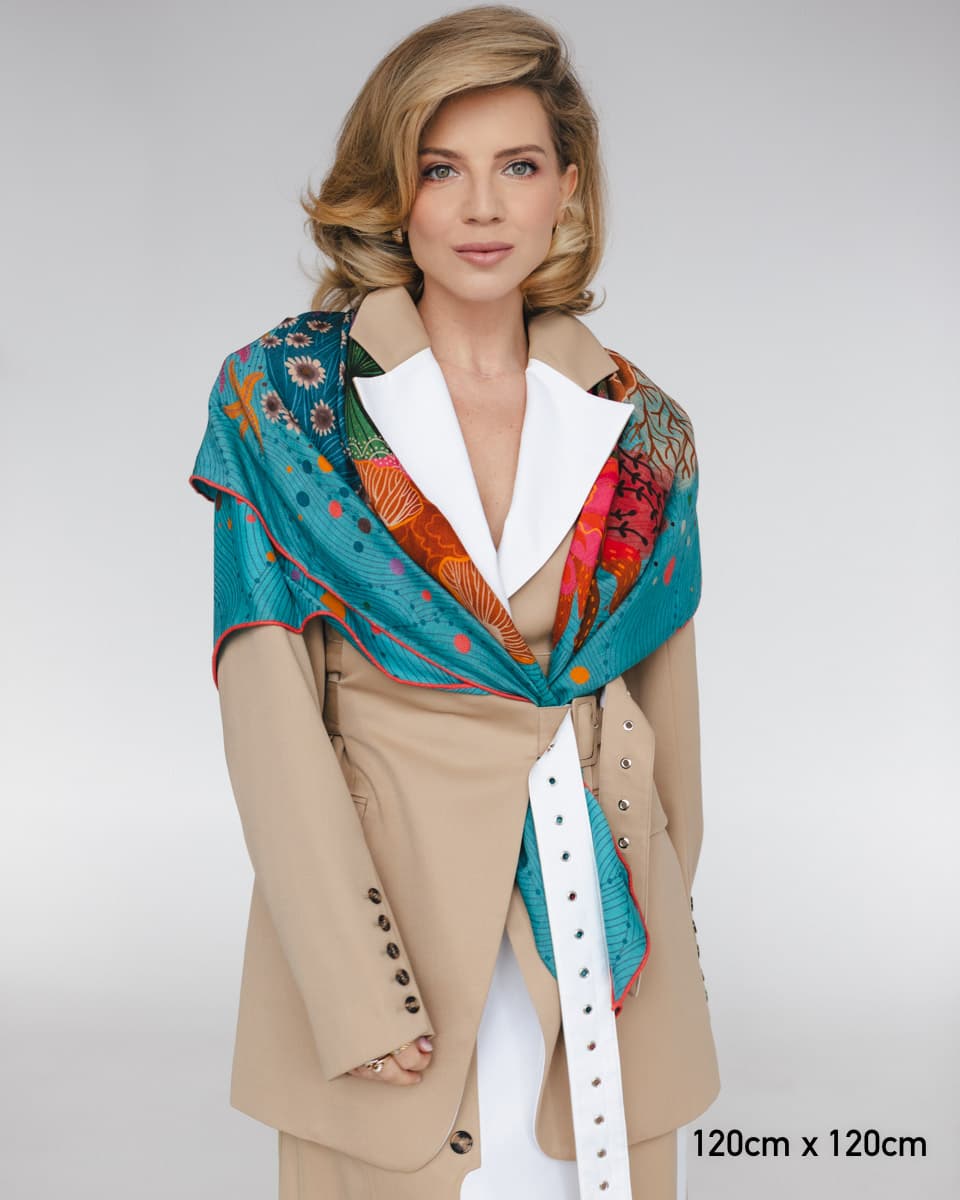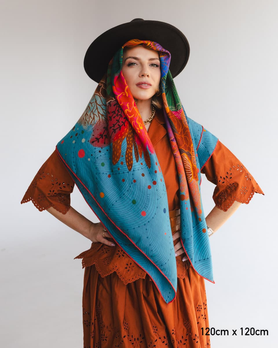 It is a story about appearances, and about beauty that escapes clear definition. About reefs that look like blooming meadows, about nature that refuses to fit into frames. This scarf is a tribute to the underwater world - full of surprising shapes, lush structures, and colors that dazzle like the most exquisite bouquets.