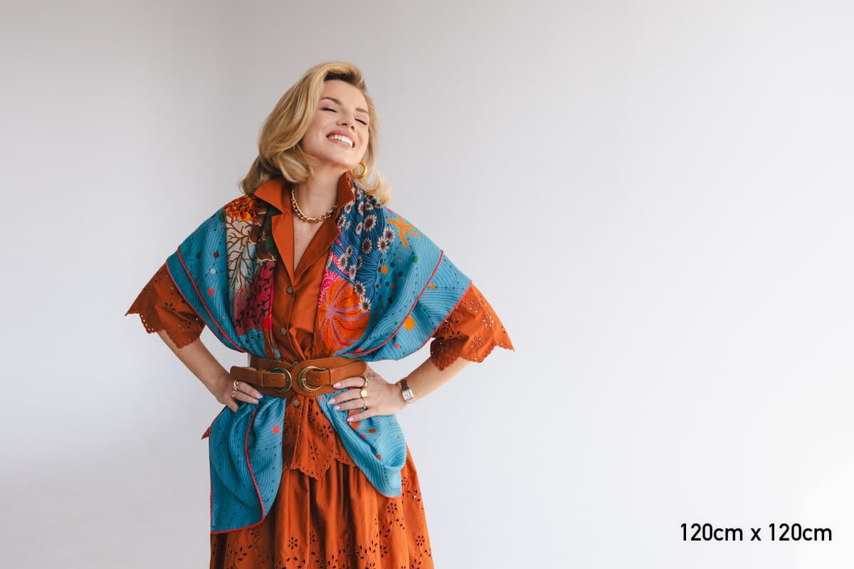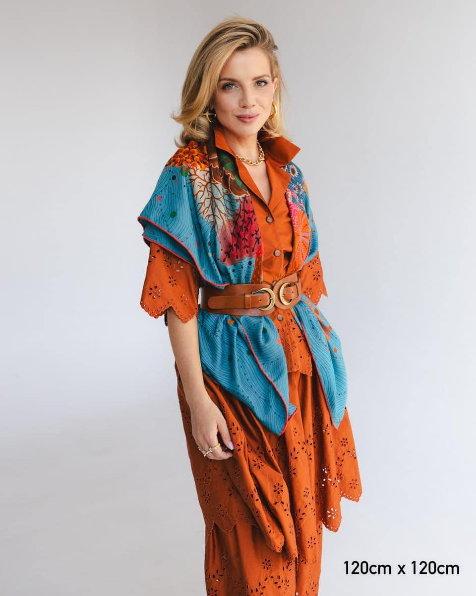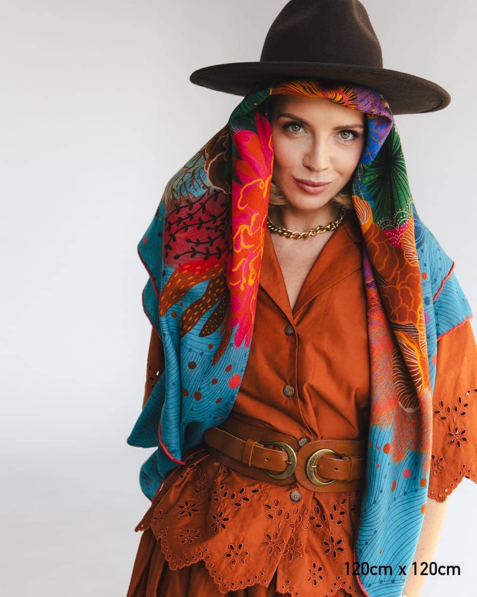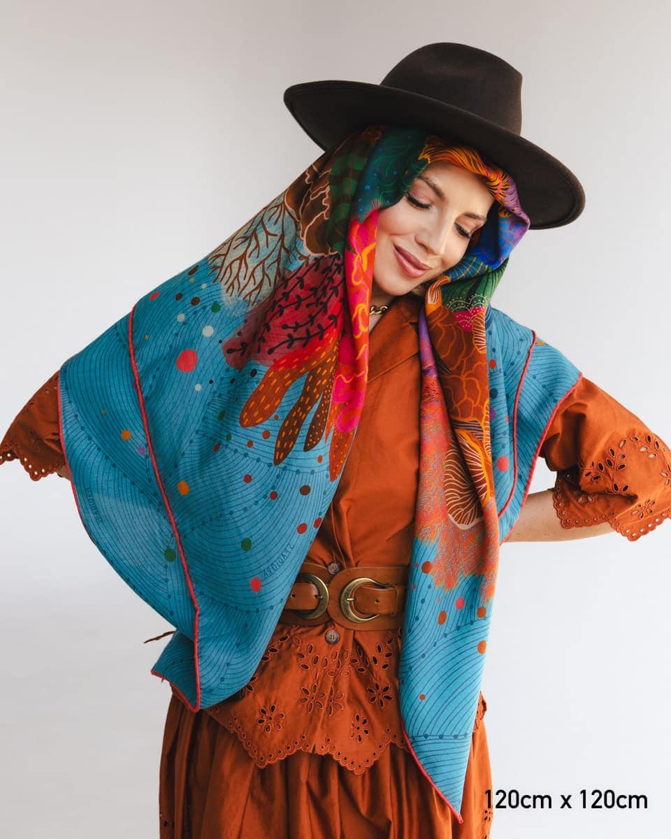 It is a story about appearances, and about beauty that escapes clear definition. About reefs that look like blooming meadows, about nature that refuses to fit into frames. This scarf is a tribute to the underwater world - full of surprising shapes, lush structures, and colors that dazzle like the most exquisite bouquets.