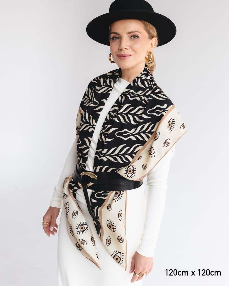 They combine the lightness of silk with the softness and coziness of wool, draping beautifully and wrapping the body naturally. The herringbone weave and hand-rolled edges emphasize their unique character and attention to each and every detail. Created in our iconic patterns, though due to the different fabric composition and weave, the colour intensity may differ slightly from our 100% silk scarves. Perfect for chilly days and summer evenings alike - versatile, stylish, and made to be worn all year round.