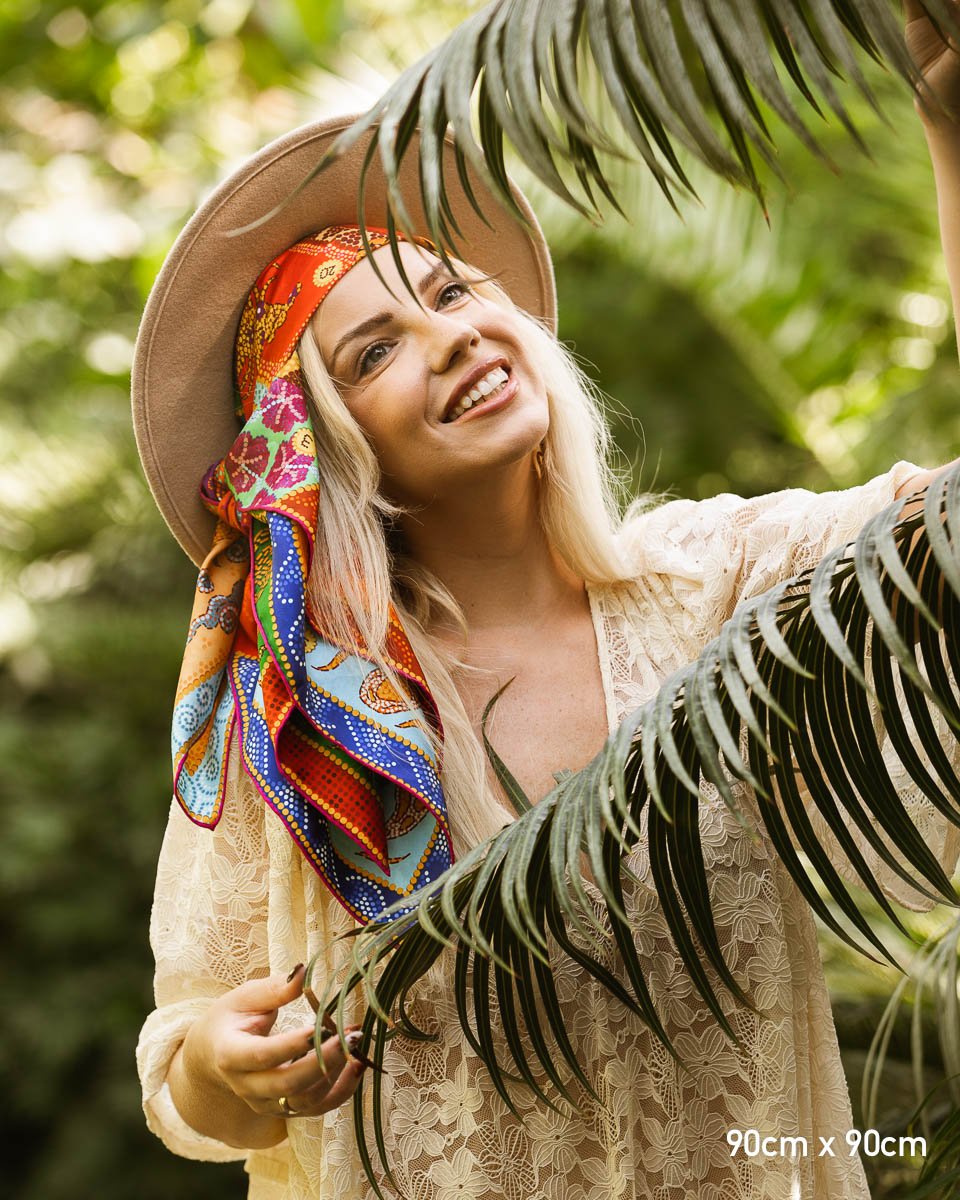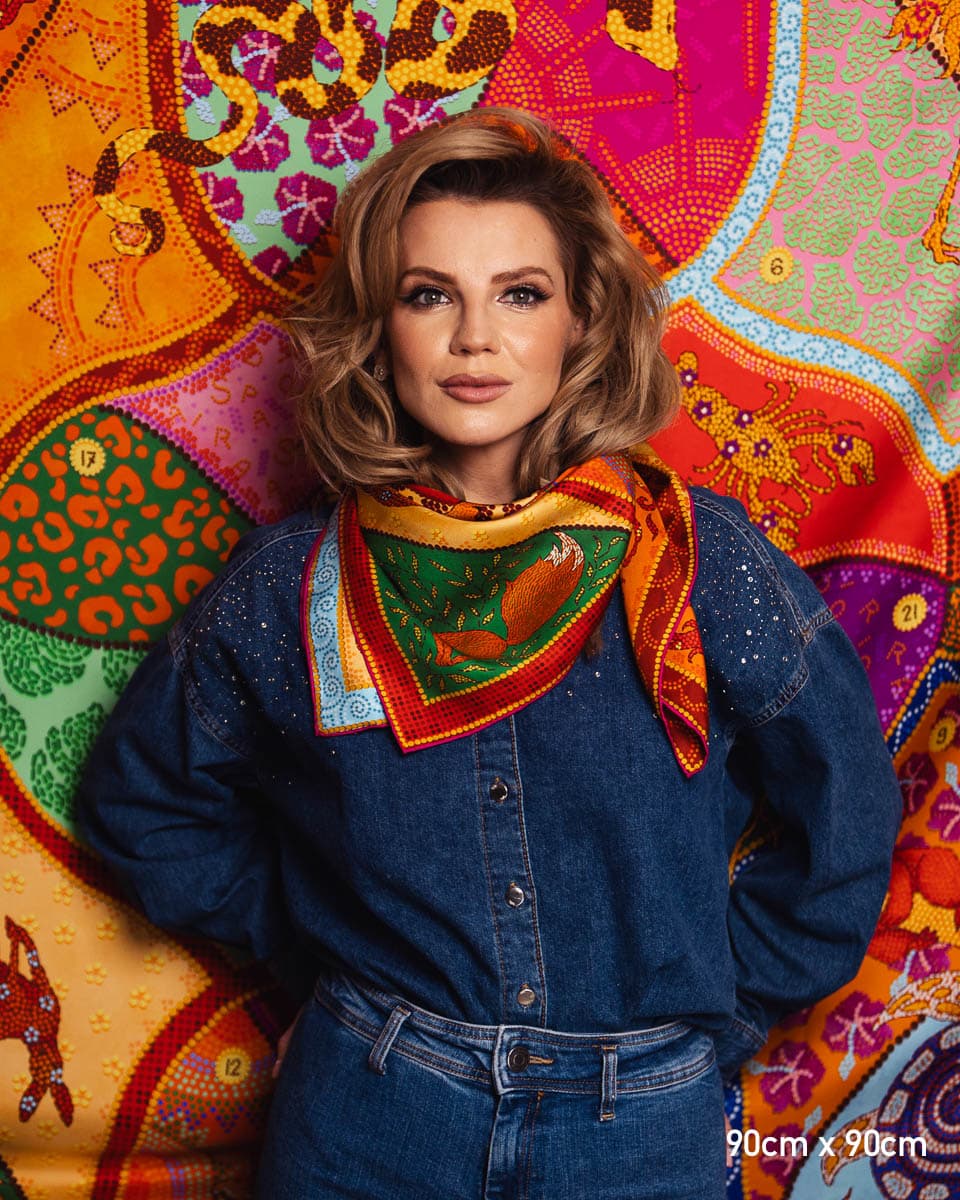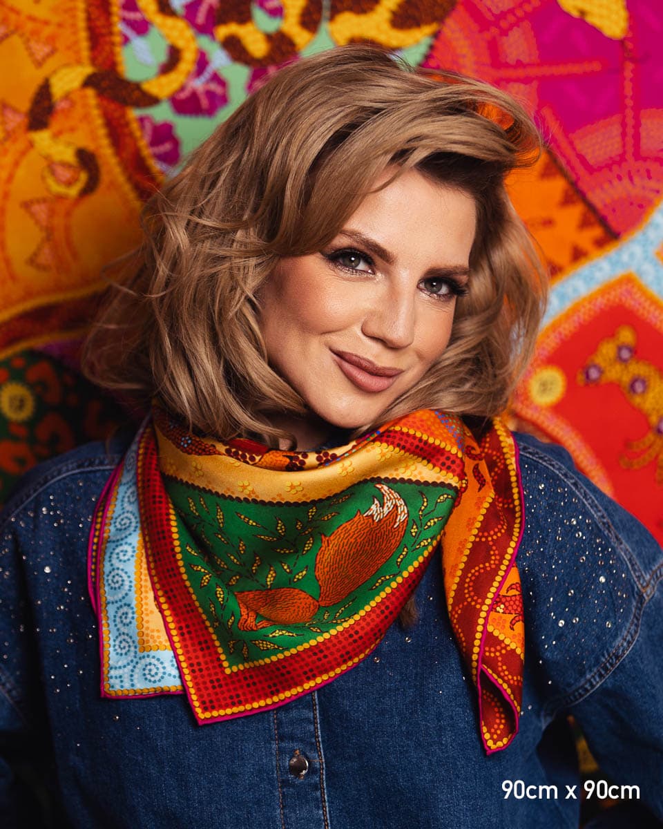 Nasze jedwabne apaszki mają ręcznie rolowane brzegi, dlatego tolerancja każdego wymiaru wynosi do 5%.