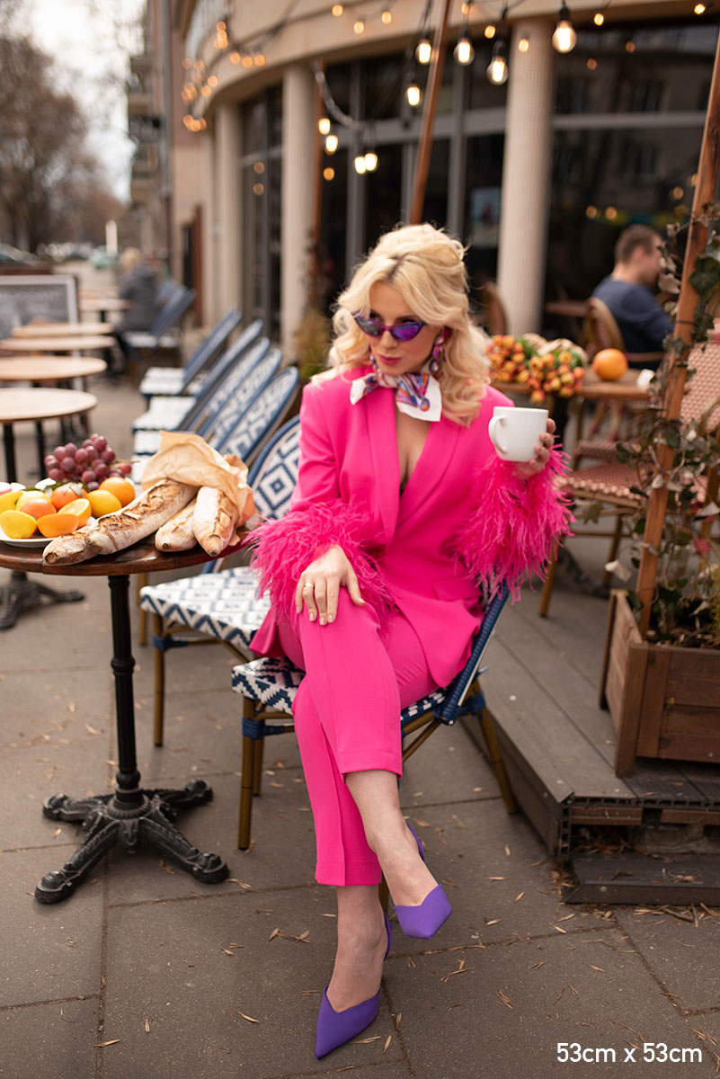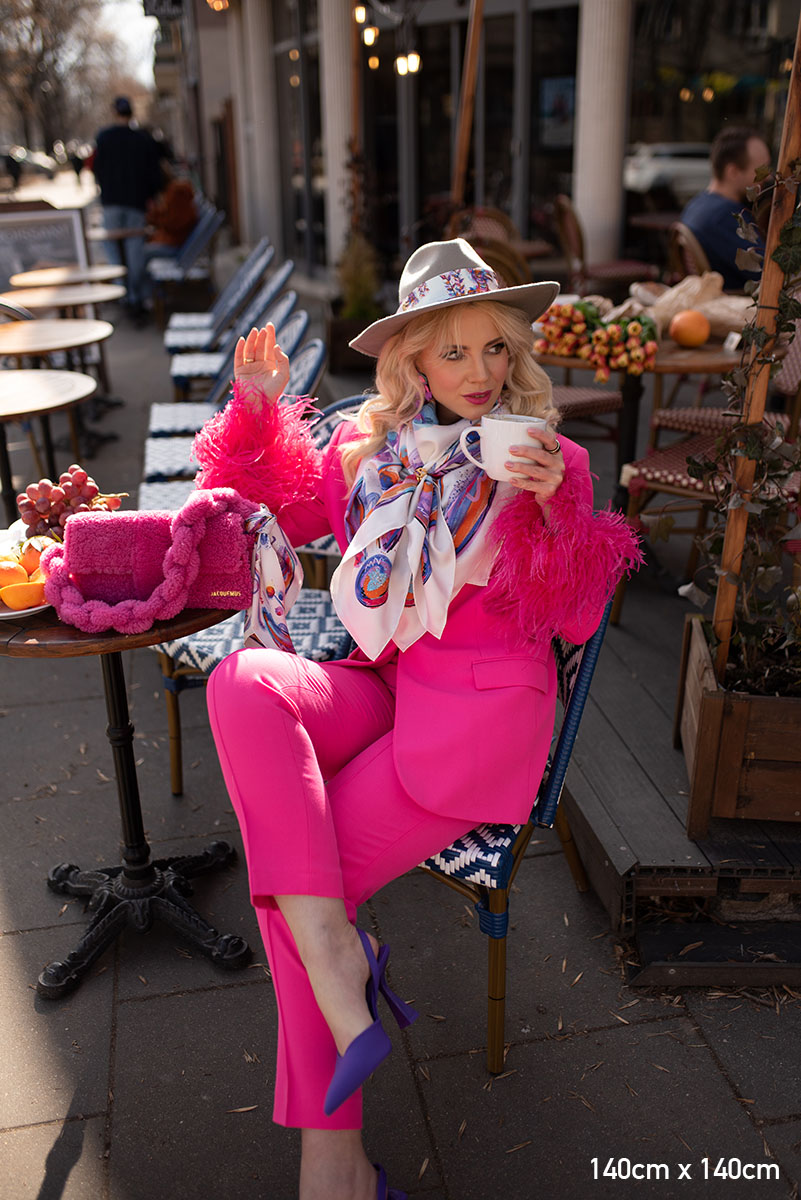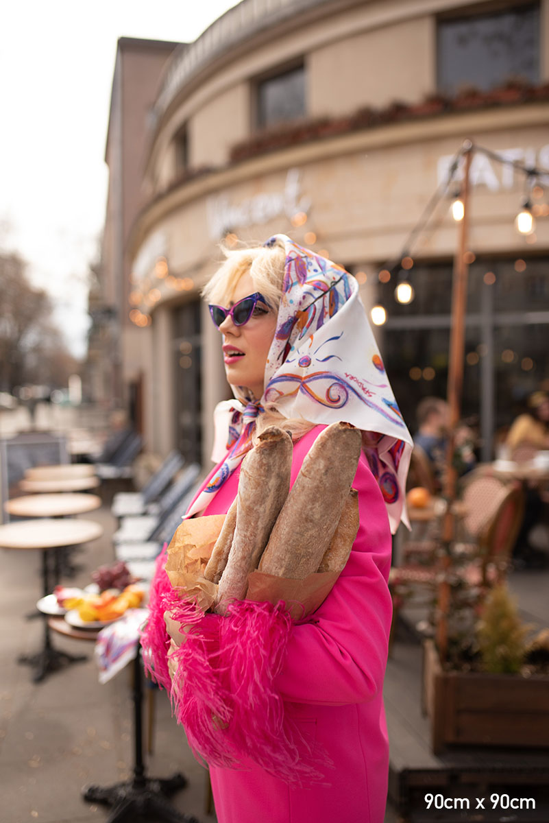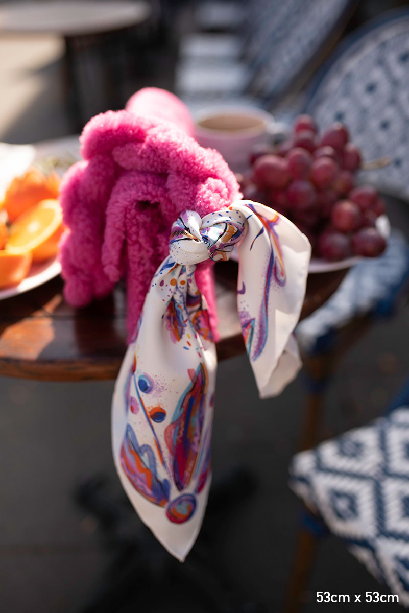 Nasze jedwabne apaszki mają ręcznie rolowane brzegi, dlatego tolerancja każdego wymiaru wynosi do 5%.