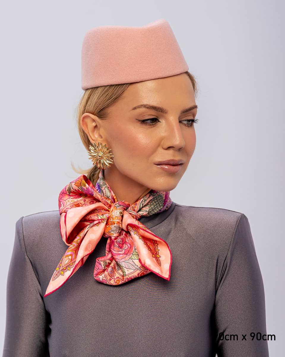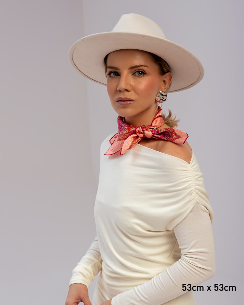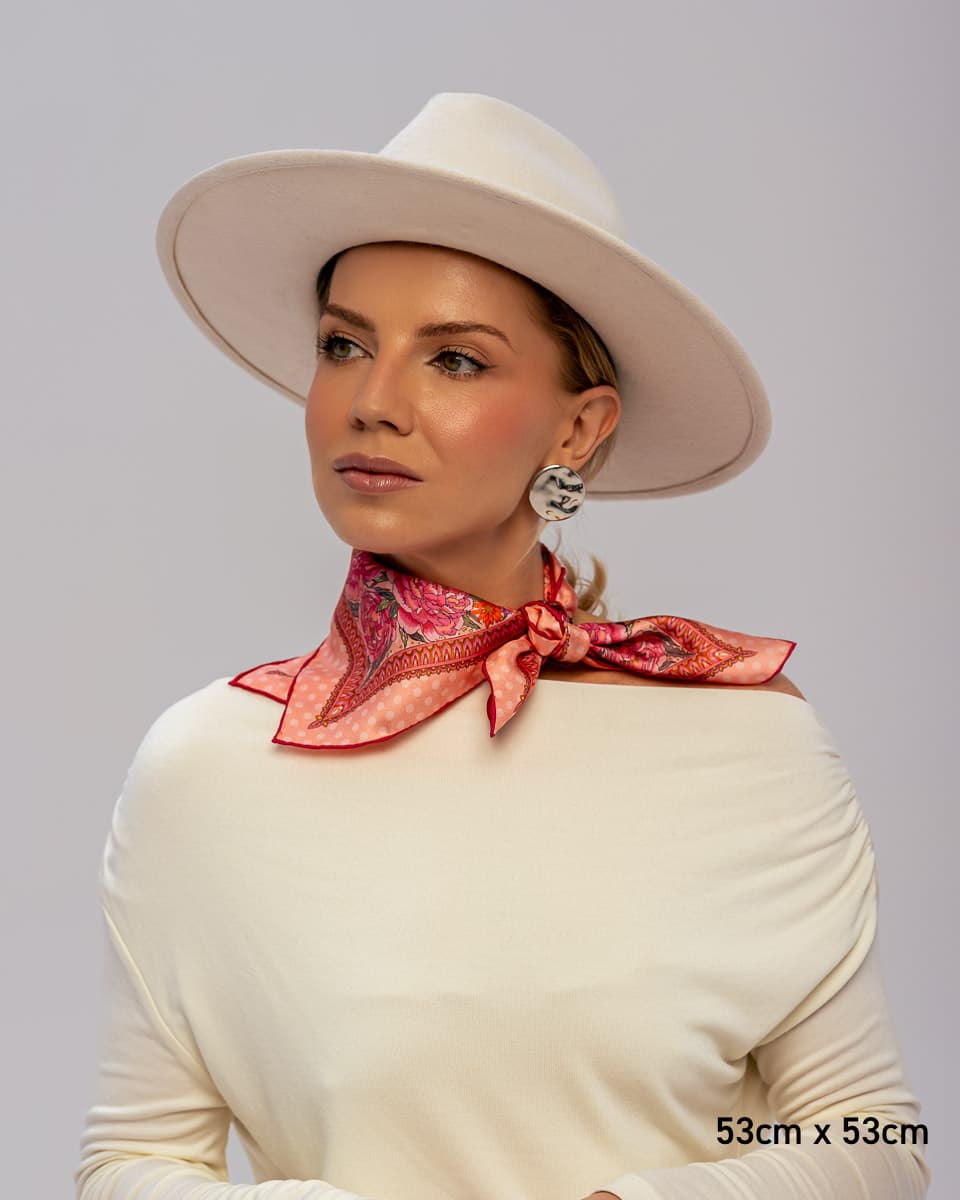 Nasze jedwabne apaszki mają ręcznie rolowane brzegi, dlatego tolerancja każdego wymiaru wynosi do 5%.