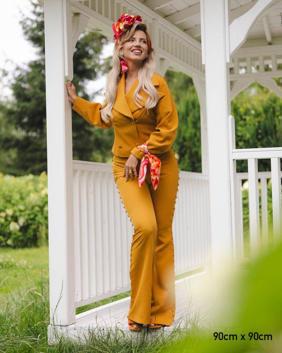 Nasze jedwabne apaszki mają ręcznie rolowane brzegi, dlatego tolerancja każdego wymiaru wynosi do 5%.