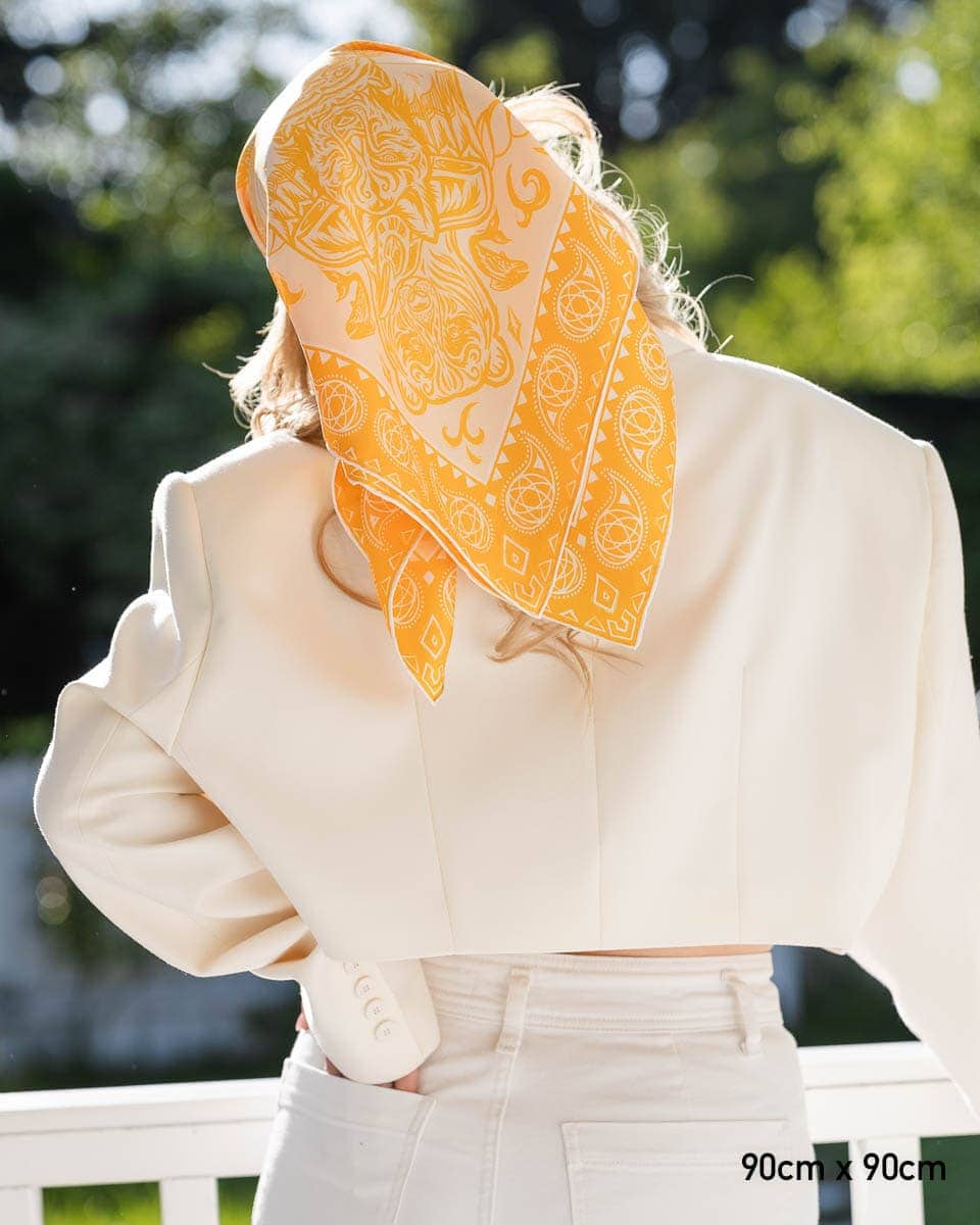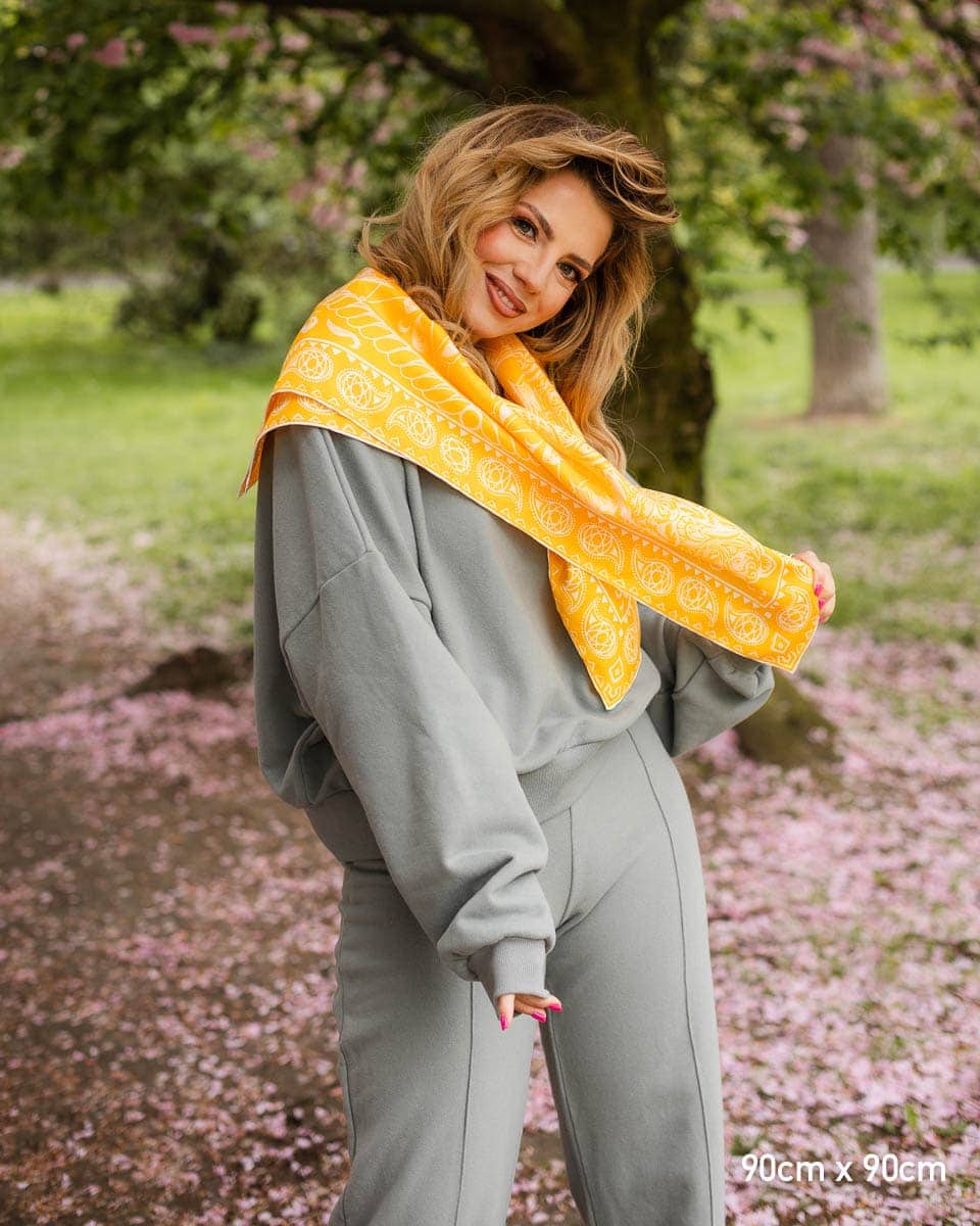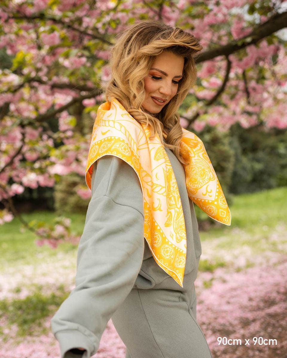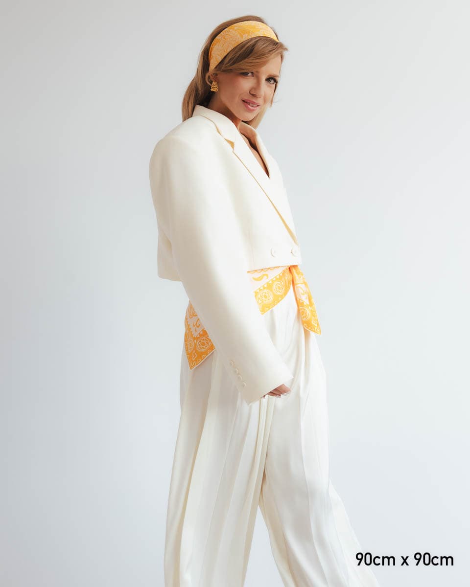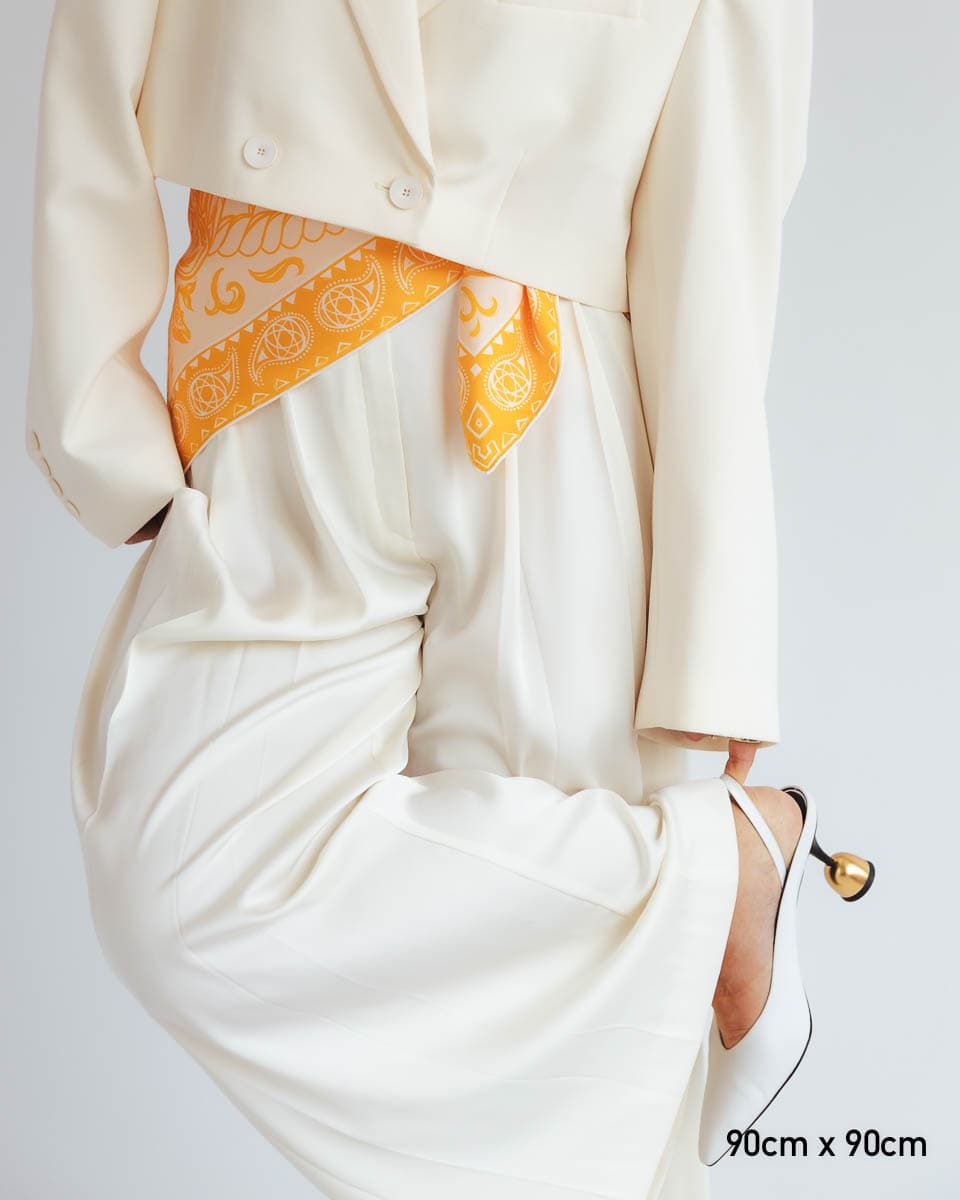 Nasze jedwabne apaszki mają ręcznie rolowane brzegi, dlatego tolerancja każdego wymiaru wynosi do 5%.
