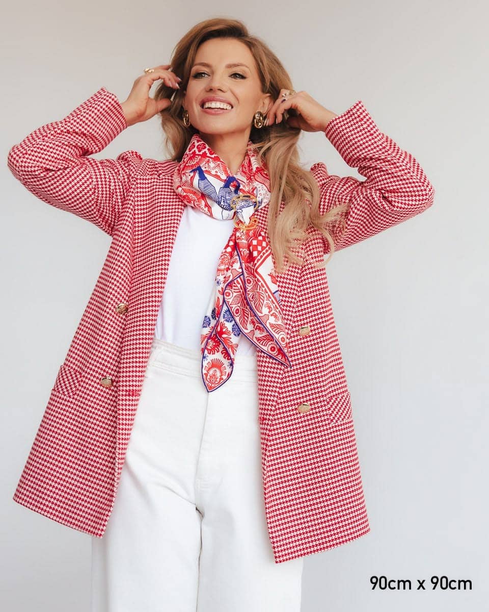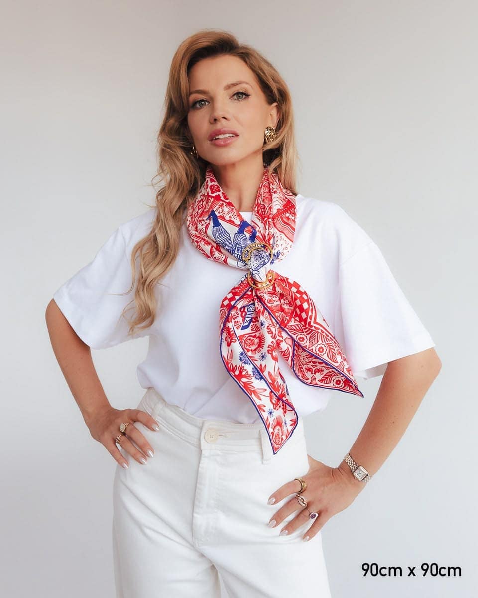 Na tej apaszce znajdziecie najbardziej kultowe polskie tańce ludowe. Apaszka jest inspirowana grafikami Zofii Stryjeńskiej o tym właśnie tytule.