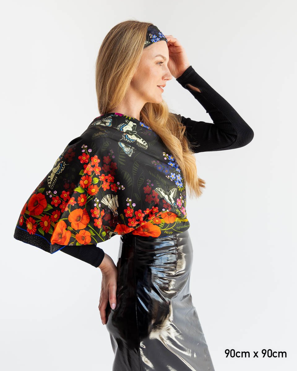 Nasze jedwabne apaszki mają ręcznie rolowane brzegi, dlatego tolerancja każdego wymiaru wynosi do 5%.