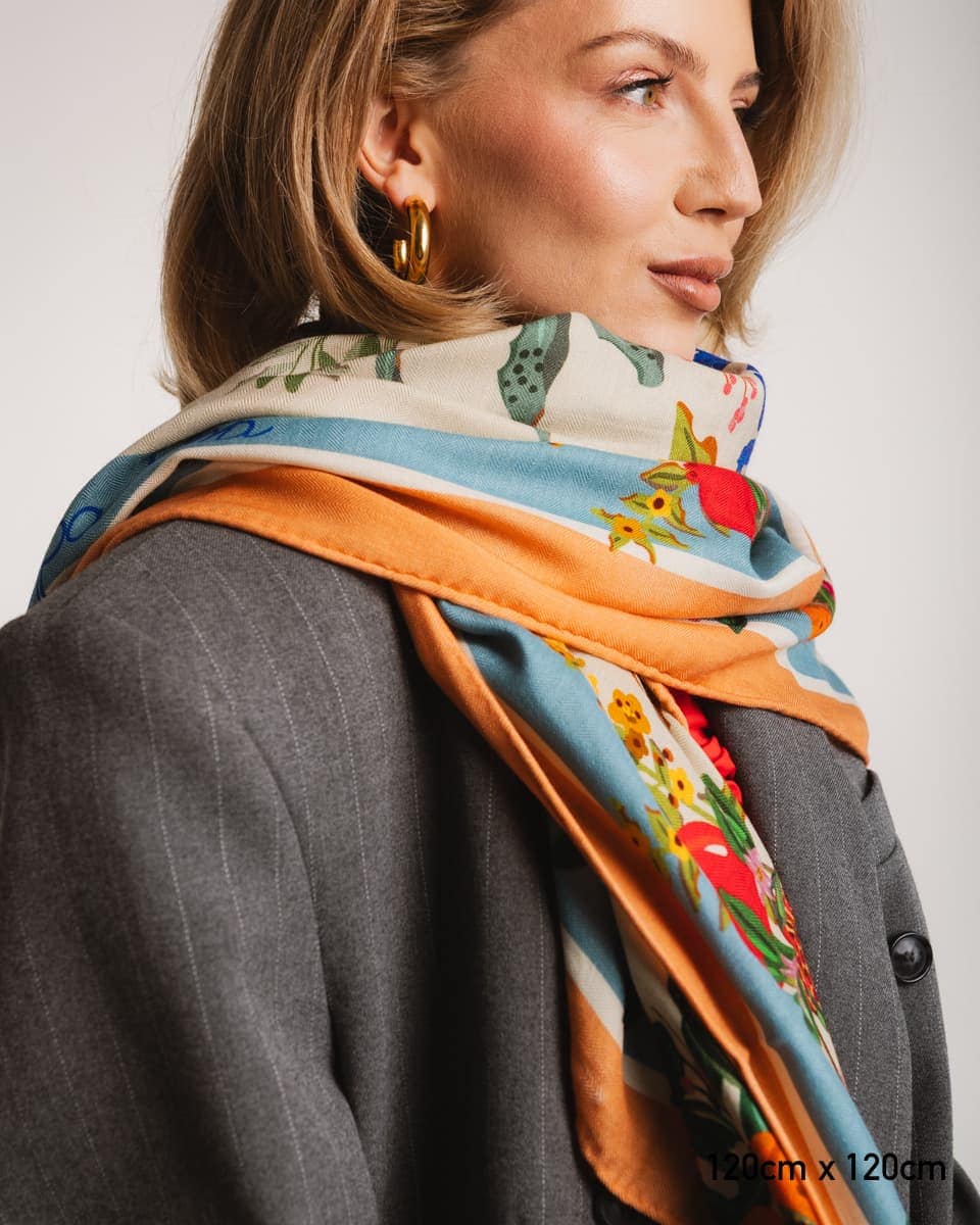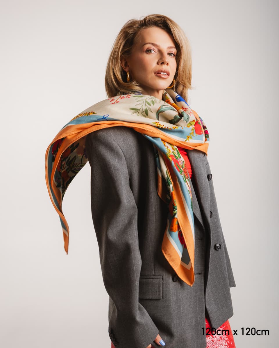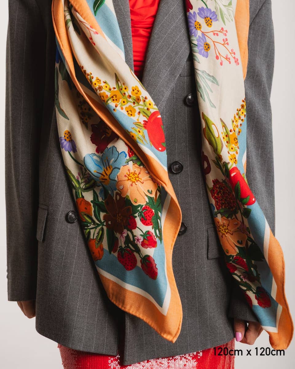 Łączą lekkość jedwabiu z miękkością i otulającym charakterem wełny, dzięki czemu pięknie się układają i naturalnie otulają sylwetkę. Splot jodełkowy oraz ręcznie rolowane brzegi podkreślają ich wyjątkowy charakter i dbałość o detale. Powstały w naszych kultowych wzorach, jednak z racji na inny skład i splot, nasycenie kolorów może różnić się od apaszek w 100% jedwabnych. Idealne zarówno na chłodne dni, jak i letnie wieczory – uniwersalne, stylowe, stworzone do noszenia przez cały rok.