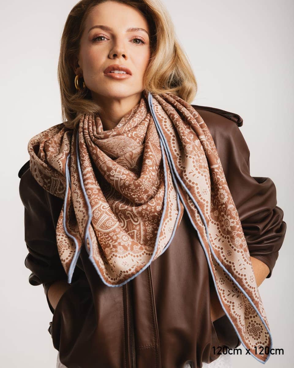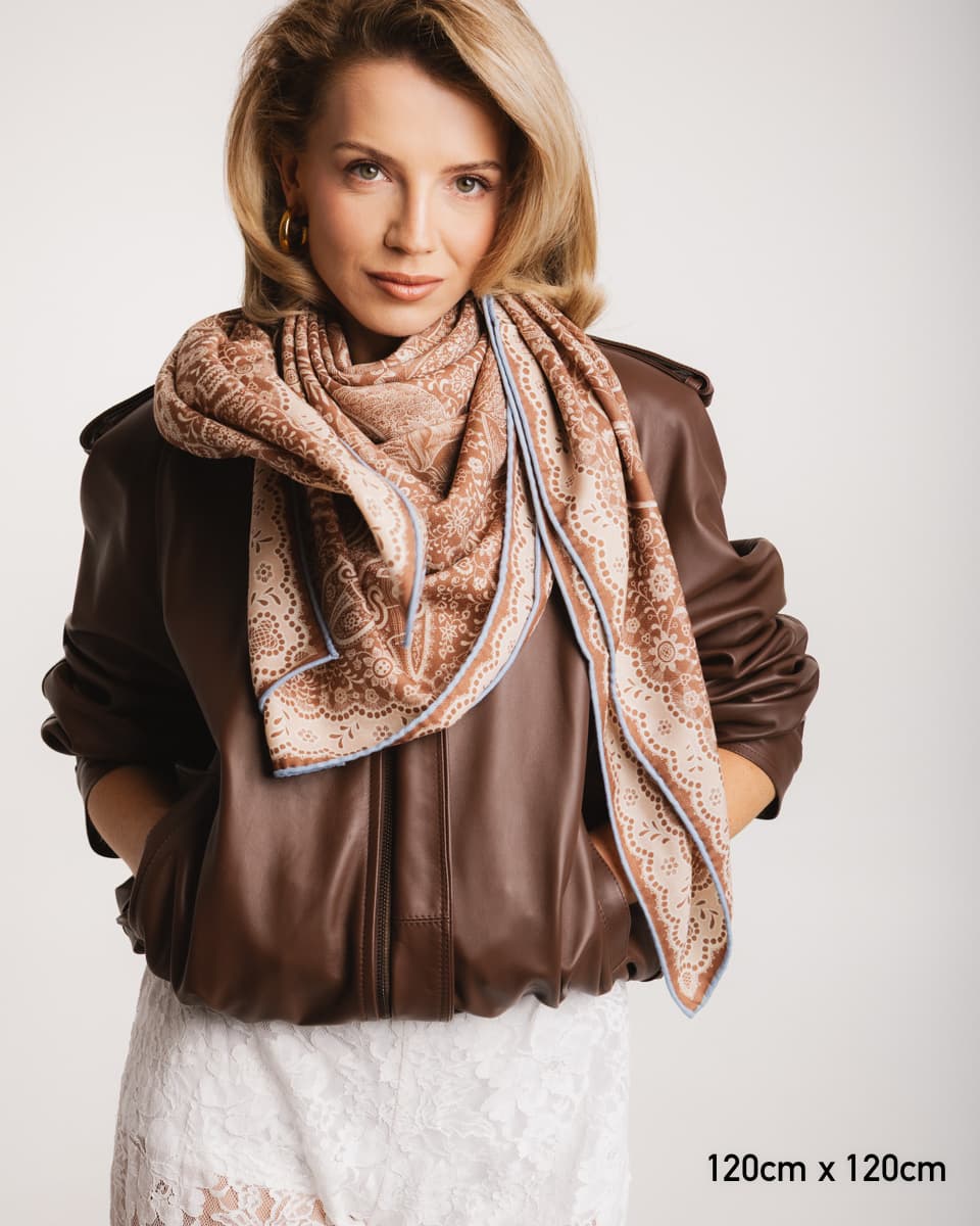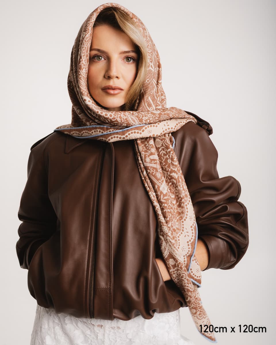 Łączą lekkość jedwabiu z miękkością i otulającym charakterem wełny, dzięki czemu pięknie się układają i naturalnie otulają sylwetkę. Splot jodełkowy oraz ręcznie rolowane brzegi podkreślają ich wyjątkowy charakter i dbałość o detale. Powstały w naszych kultowych wzorach, jednak z racji na inny skład i splot, nasycenie kolorów może różnić się od apaszek w 100% jedwabnych. Idealne zarówno na chłodne dni, jak i letnie wieczory - uniwersalne, stylowe, stworzone do noszenia przez cały rok.