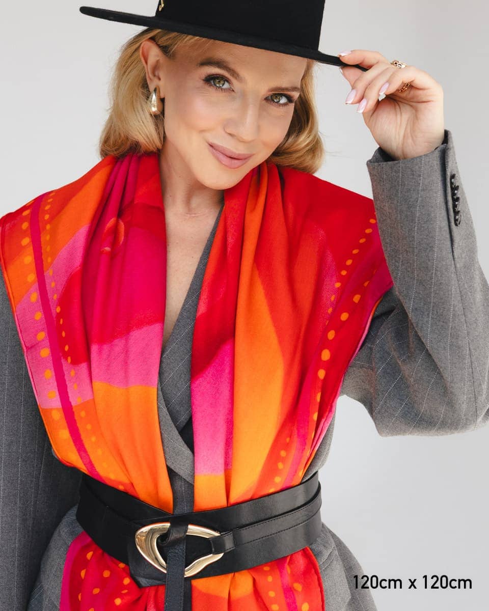 Łączą lekkość jedwabiu z miękkością i otulającym charakterem wełny, dzięki czemu pięknie się układają i naturalnie otulają sylwetkę. Splot jodełkowy oraz ręcznie rolowane brzegi podkreślają ich wyjątkowy charakter i dbałość o detale. Powstały w naszych kultowych wzorach, jednak z racji na inny skład i splot, nasycenie kolorów może różnić się od apaszek w 100% jedwabnych. Idealne zarówno na chłodne dni, jak i letnie wieczory – uniwersalne, stylowe, stworzone do noszenia przez cały rok.
