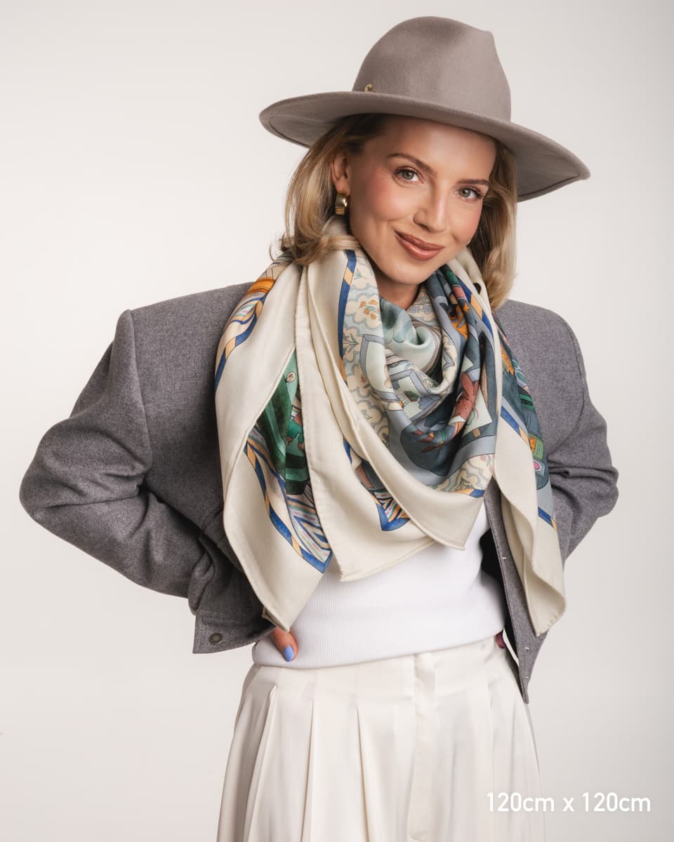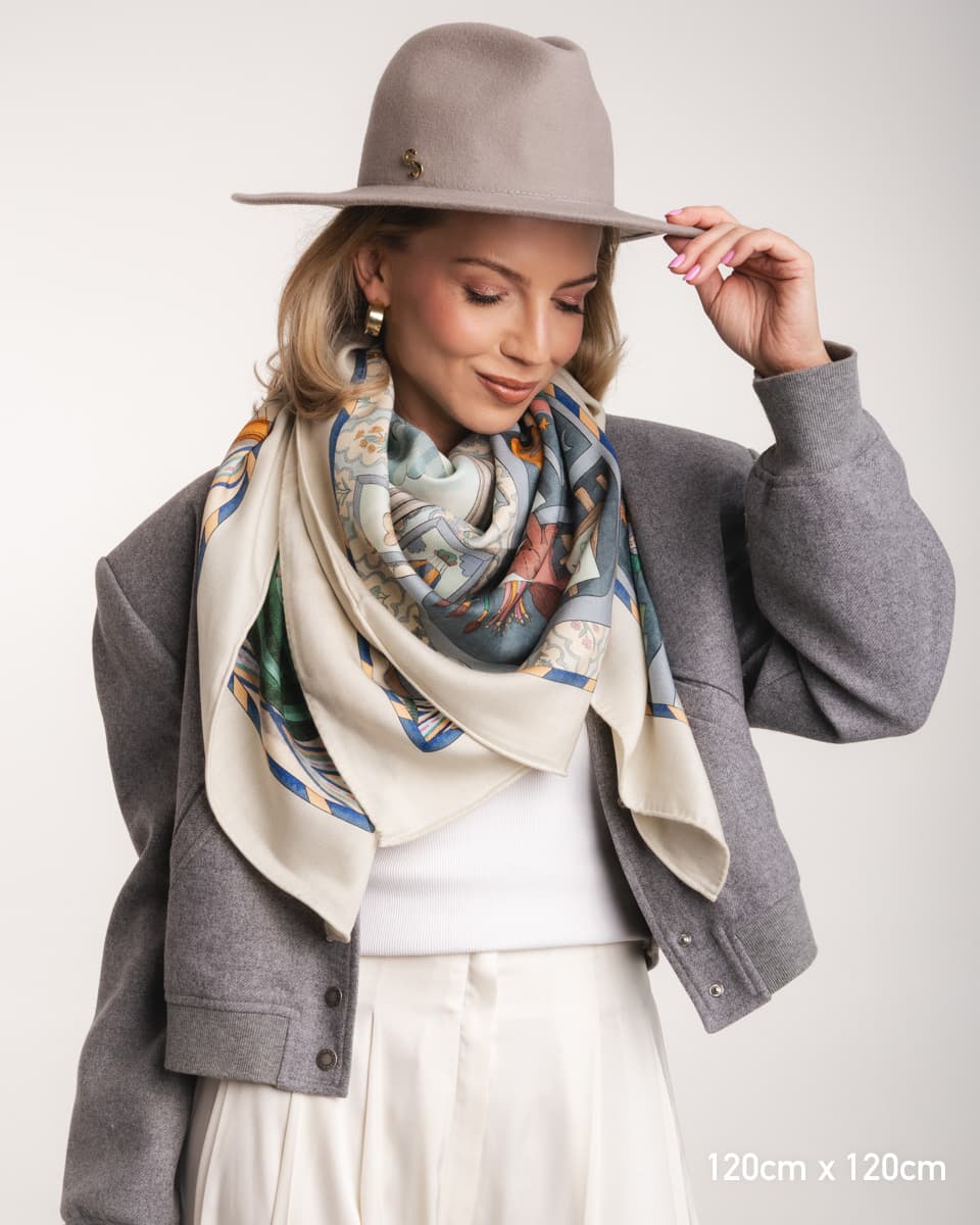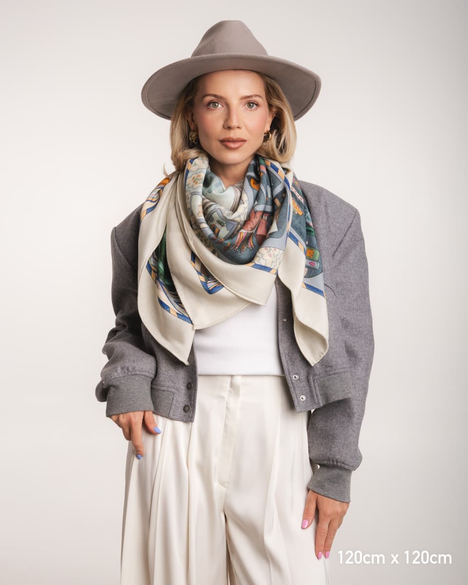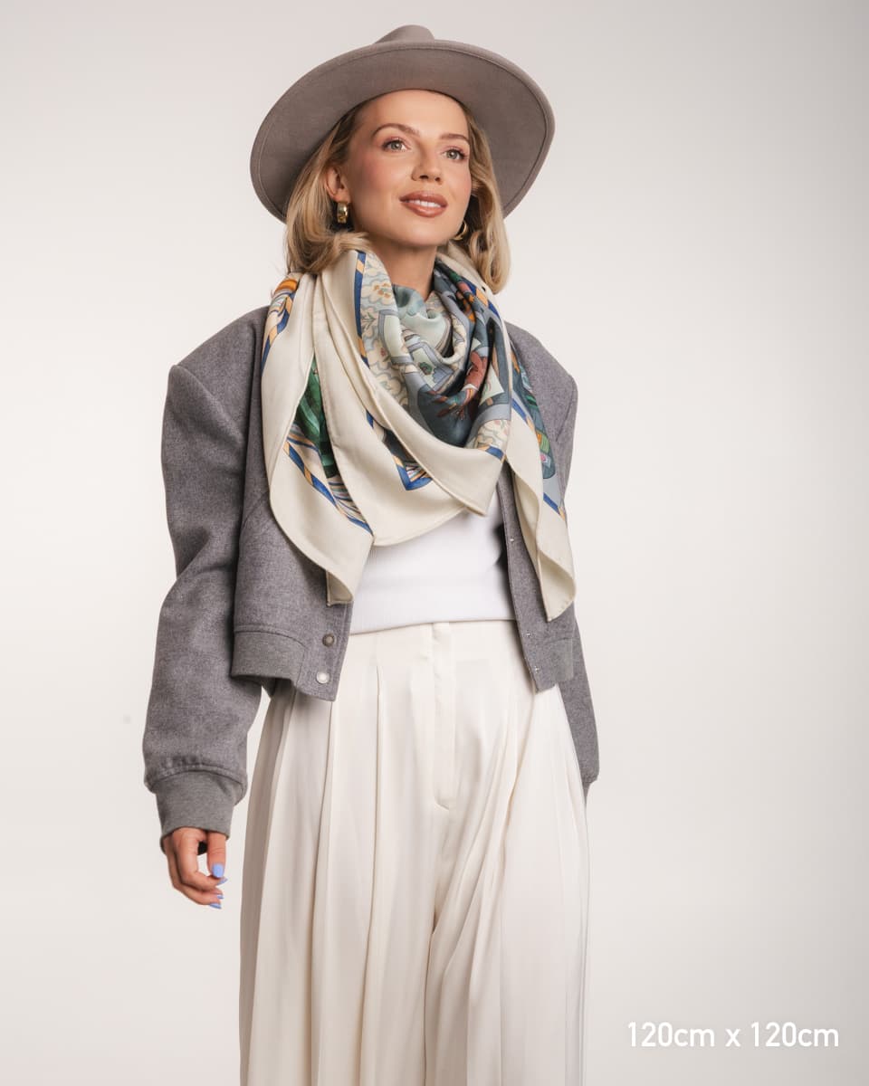 Łączą lekkość jedwabiu z miękkością i otulającym charakterem wełny, dzięki czemu pięknie się układają i naturalnie otulają sylwetkę. Splot jodełkowy oraz ręcznie rolowane brzegi podkreślają ich wyjątkowy charakter i dbałość o detale. Powstały w naszych kultowych wzorach, jednak z racji na inny skład i splot, nasycenie kolorów może różnić się od apaszek w 100% jedwabnych. Idealne zarówno na chłodne dni, jak i letnie wieczory – uniwersalne, stylowe, stworzone do noszenia przez cały rok.