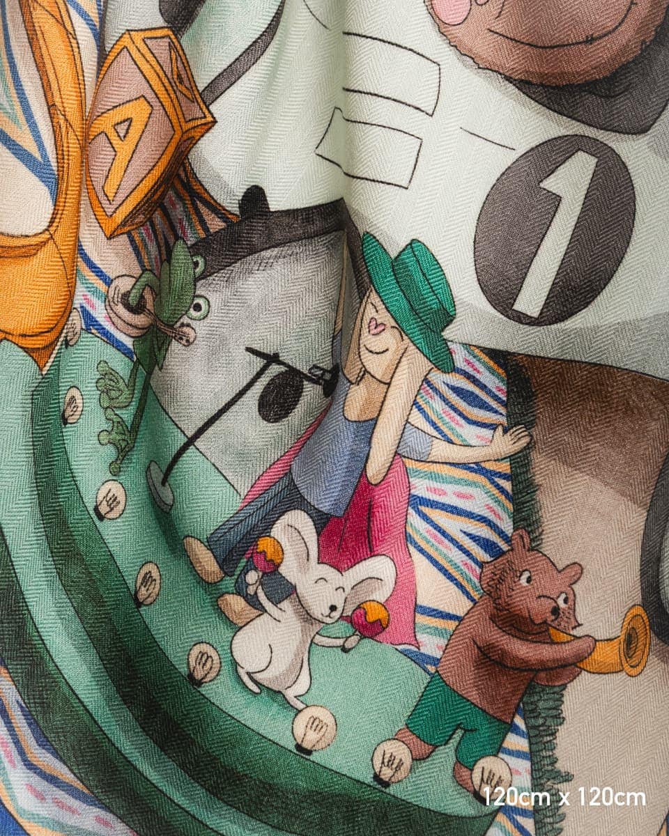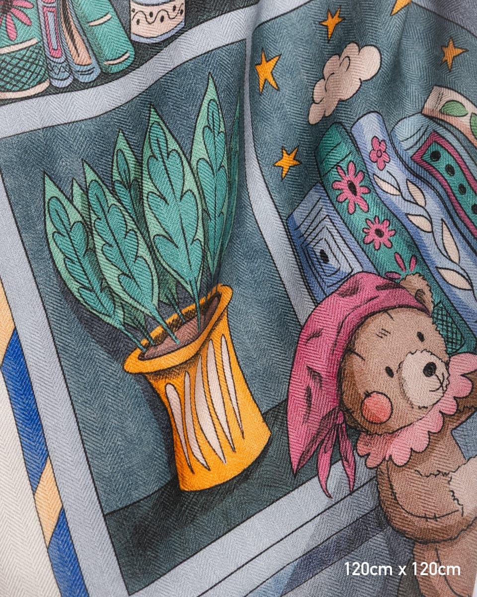 Czy w dzieciństwie wierzyłaś, że Twoje zabawki prowadzą własne, tajemnicze życie? W tej apaszce dziecięcy pokój skrywa sekrety, które dostrzeżesz dopiero po chwili – żabki wyruszają w podróż pełną przygód pociągiem, a pluszowy miś szykuje się do wyścigu. Subtelne barwy i odcienie przenoszą nas do świata, w którym nocą wszystko mogło się wydarzyć. To opowieść o magii, którą tracimy jako dorośli, ale którą odzyskujemy, tworząc świat dla naszych dzieci. Niech ten wzór przypomina, że wyobraźnia nie ma wieku – wystarczy pozwolić jej działać.