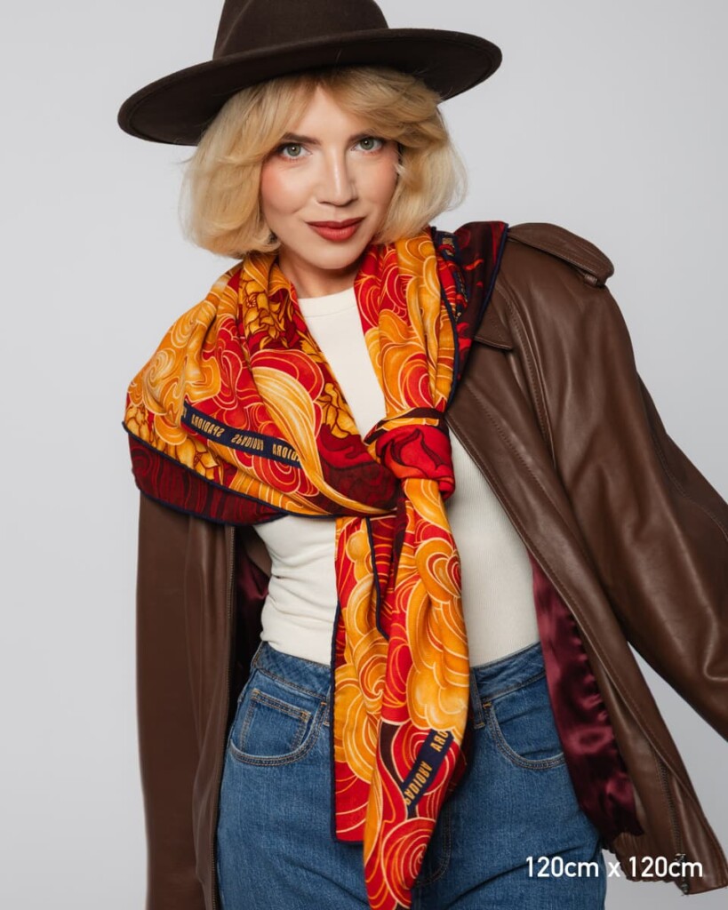 Łączą lekkość jedwabiu z miękkością i otulającym charakterem wełny, dzięki czemu pięknie się układają i naturalnie otulają sylwetkę. Splot jodełkowy oraz ręcznie rolowane brzegi podkreślają ich wyjątkowy charakter i dbałość o detale. Powstały w naszych kultowych wzorach, jednak z racji na inny skład i splot, nasycenie kolorów może różnić się od apaszek w 100% jedwabnych. Idealne zarówno na chłodne dni, jak i letnie wieczory – uniwersalne, stylowe, stworzone do noszenia przez cały rok.