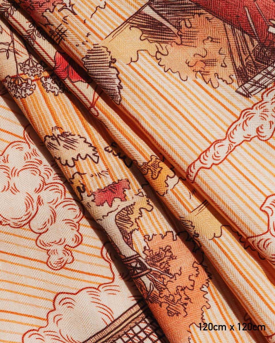 Ze względu na ekskluzywny i szlachetny charakter tkaniny będącej delikatnym i subtelnym splotem jedwabiu i wełny, produkt wymaga szczególnej troski. Chroń chustę przed ostrymi krawędziami i elementami, które mogą zaczepić o tkaninę.