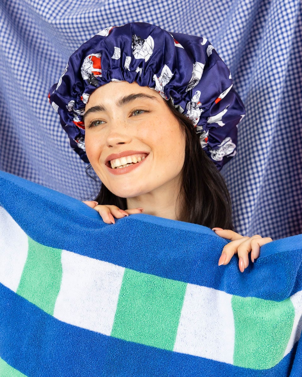 Czepek kąpielowy pod prysznic BANO to beauty gadżet, który pokochasz. Wykonany z wodoodpornego materiału, ozdobiony na zewnątrz poliestrową satyną zadrukowaną w nasze kultowe wzory.