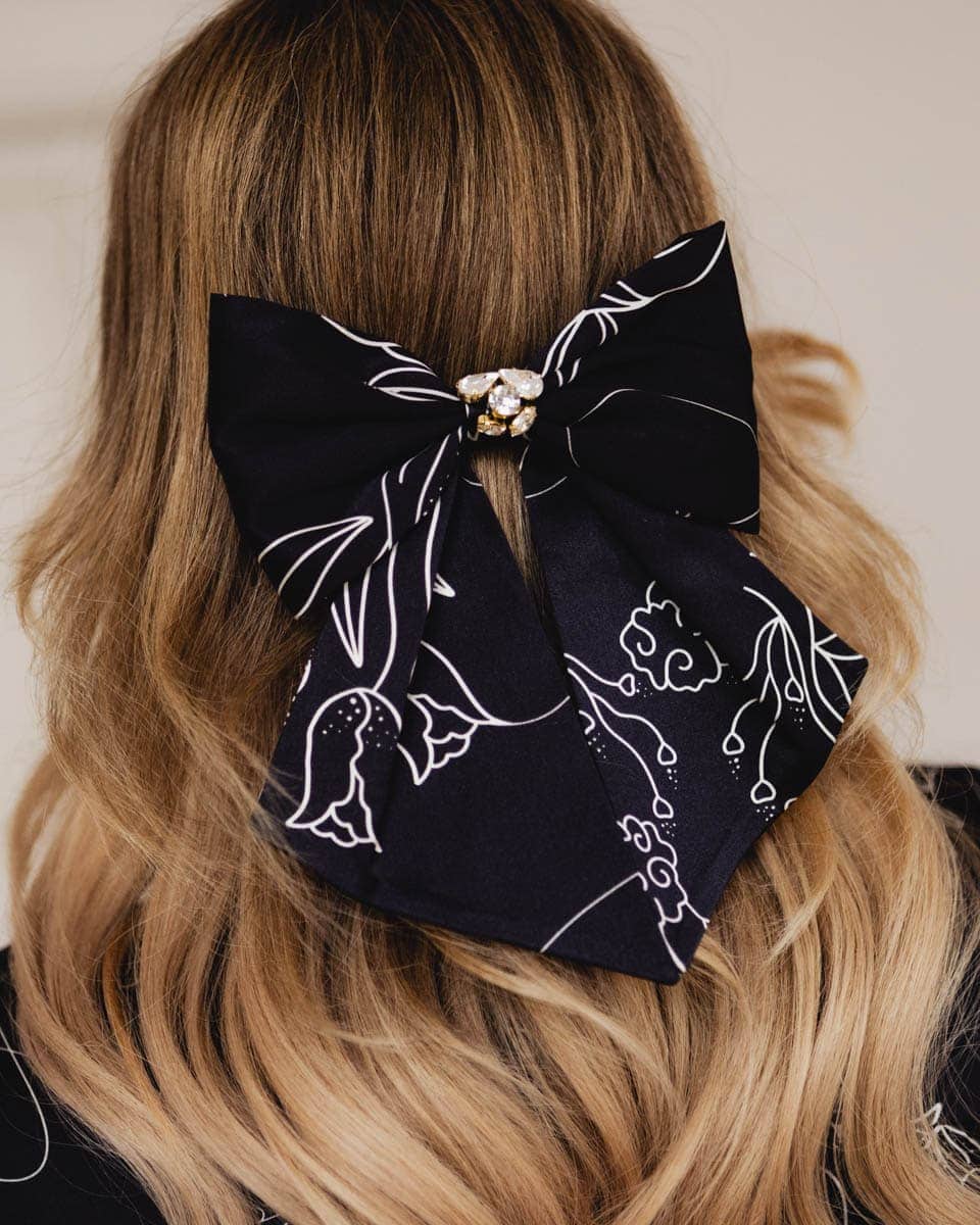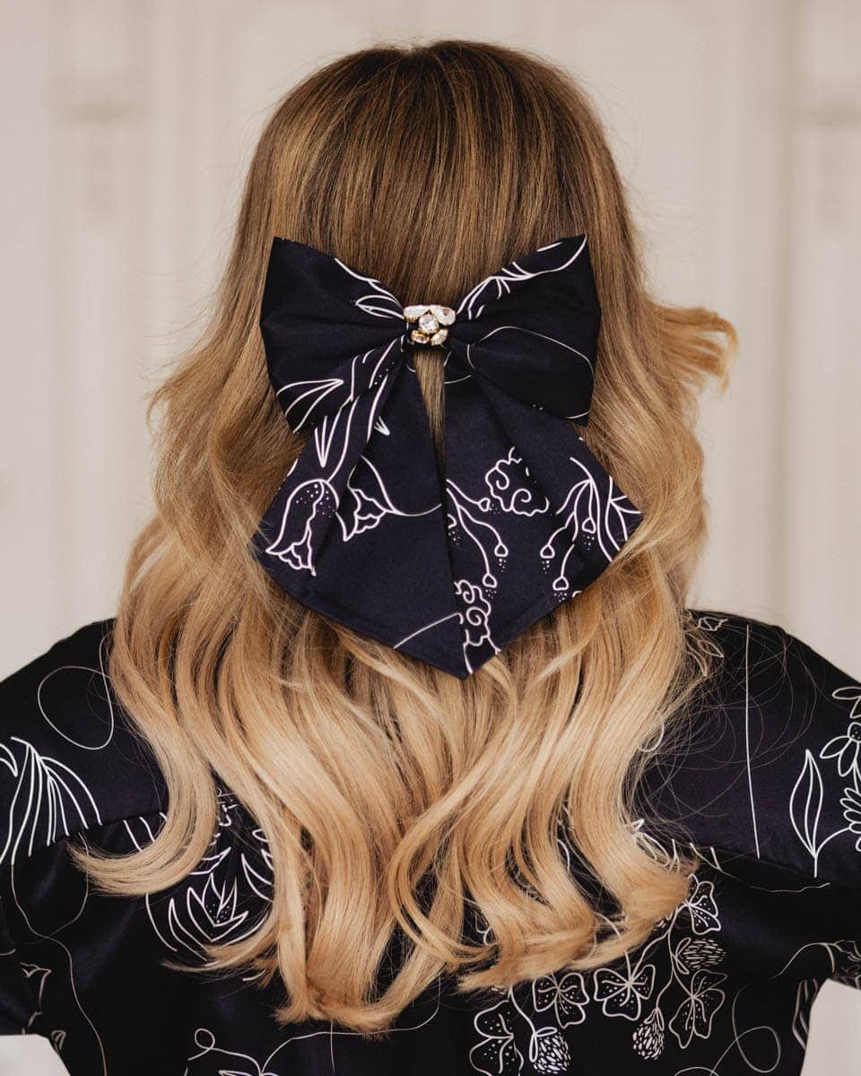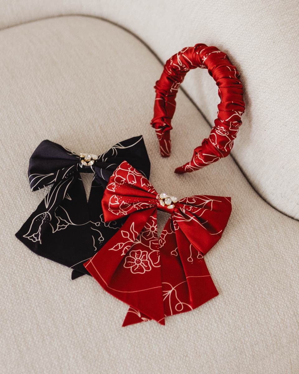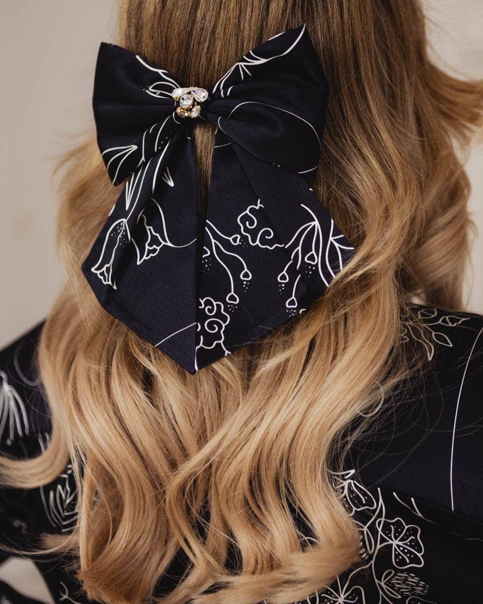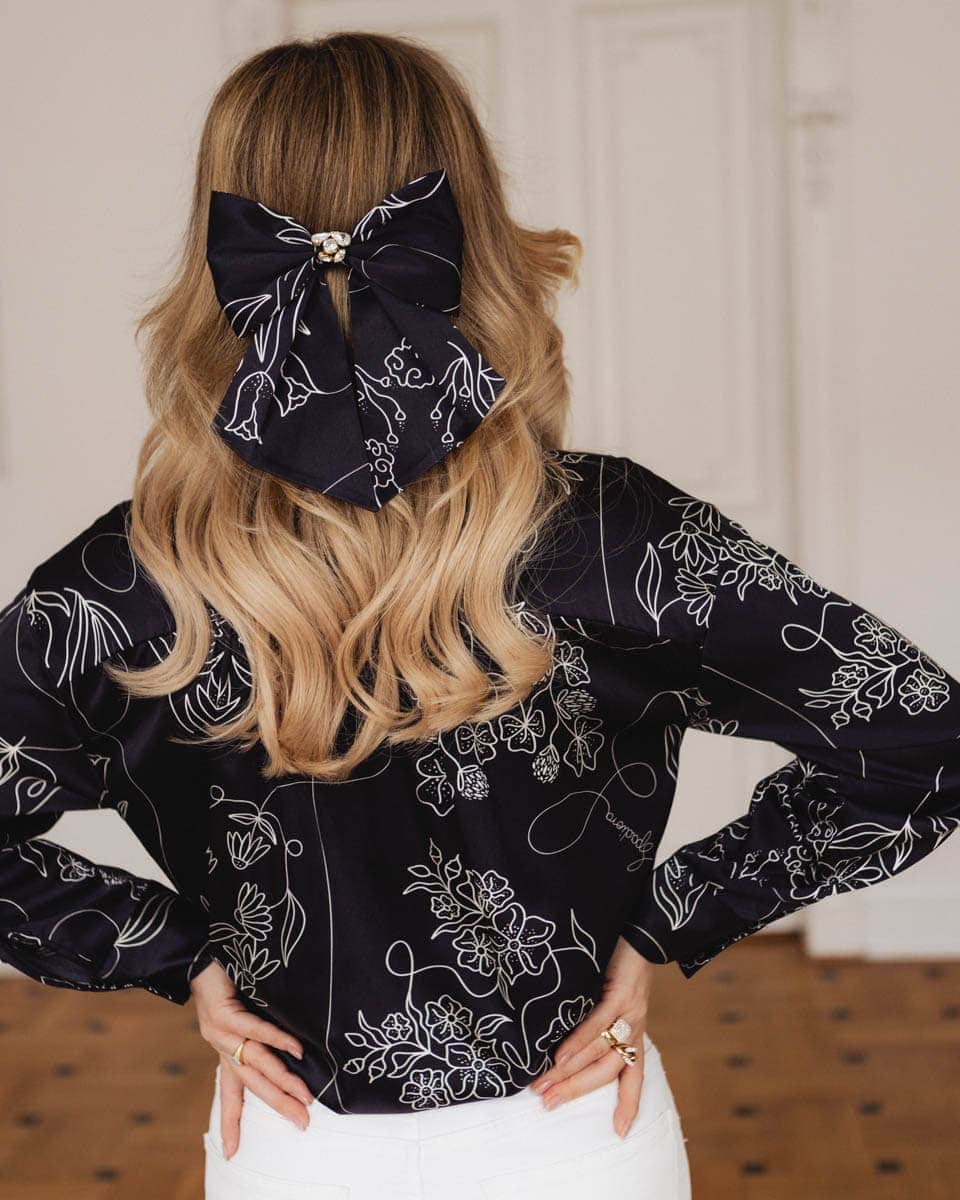 Jedwabna kokarda Rica to wyjątkowy dodatek do włosów, który łączy w sobie subtelną elegancję i ponadczasowy urok. Wykonana z najwyższej jakości jedwabiu, który pięknie odbija światło, dodając blasku każdej stylizacji. Kokarda została ozdobiona ręcznie doszywanymi kryształkami, które subtelnie podkreślają jej luksusowy charakter. Całość jest osadzona na solidnej złotej spince, co zapewnia trwałość oraz łatwość w zakładaniu i zdejmowaniu. Rica to idealny wybór dla osób poszukujących eleganckiego i ponadczasowego dodatku, który doda uroku każdej stylizacji.