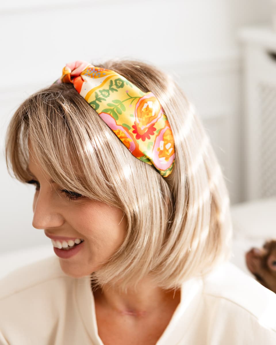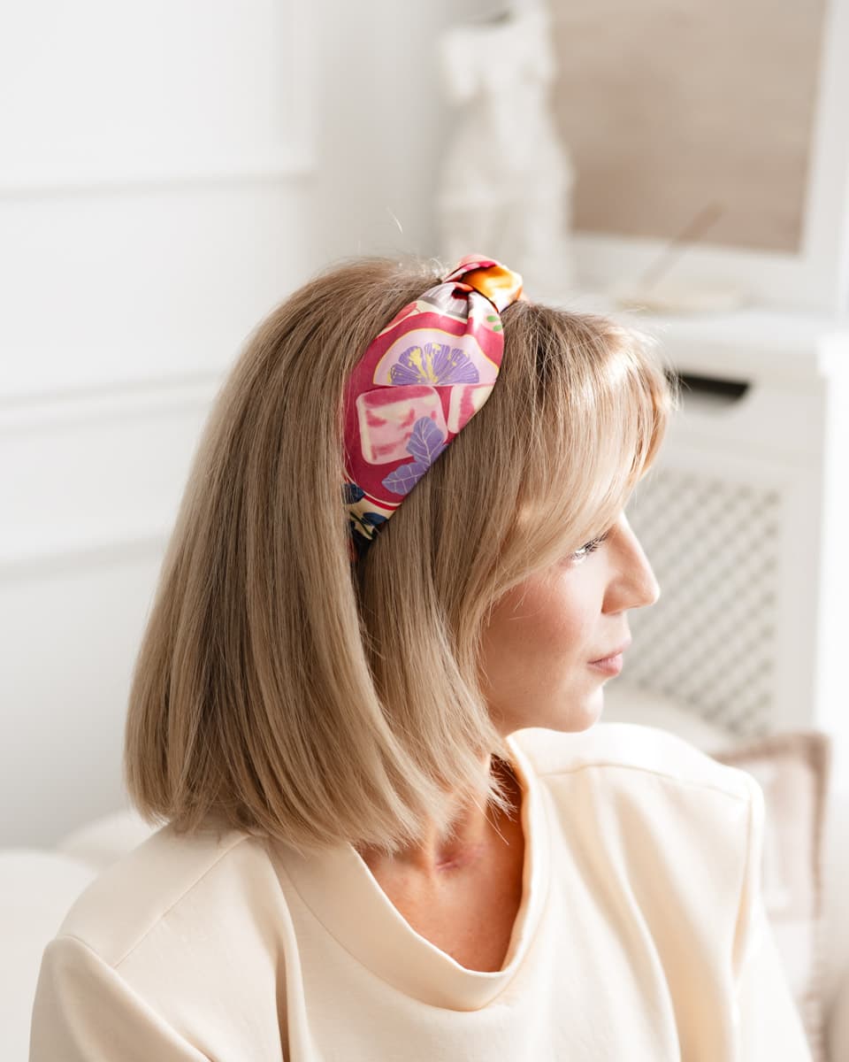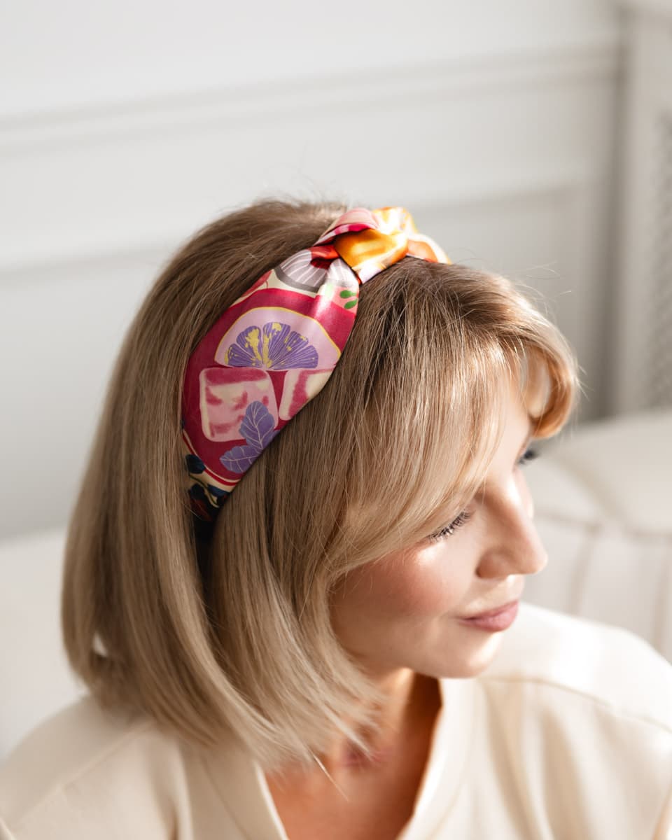 Jedwabna opaska do włosów z supełkiem „Frykasy”