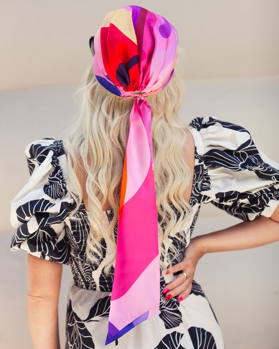 Dzięki gumce wszytej z tylu piratka bardzo stabilnie i komfortowo trzyma się na głowie. Wykończona długimi szarfami sprawi że wyróżnisz się z tłumu i poczujesz się wyjątkowo. Można ją na kilka sposobów: rozwiązaną lub wywiązaną w kokardę.