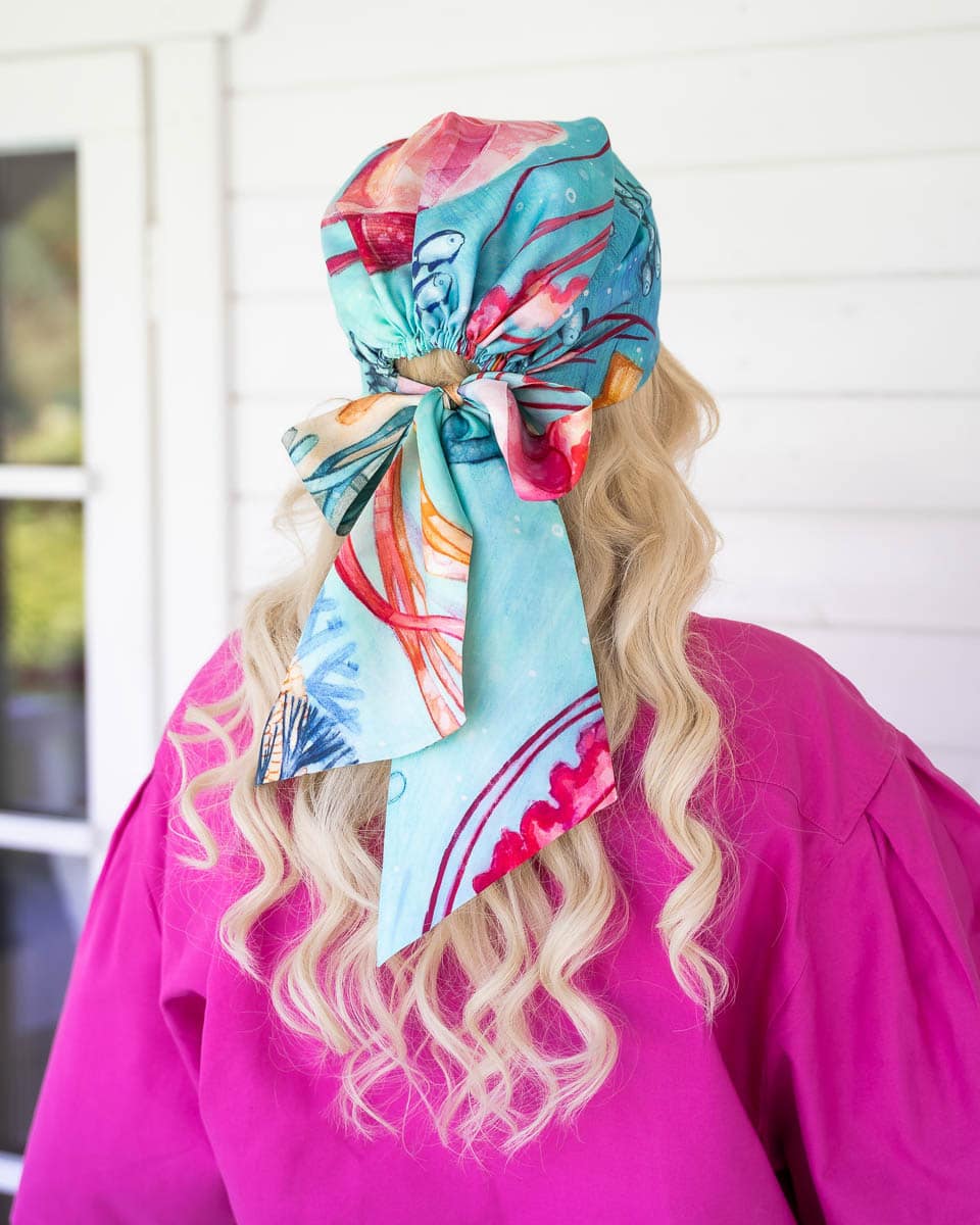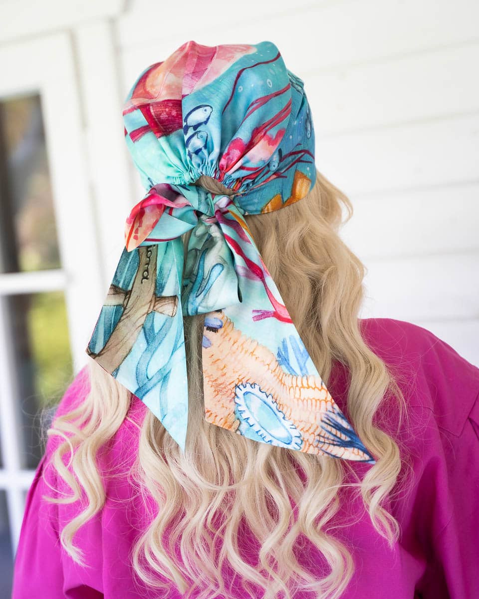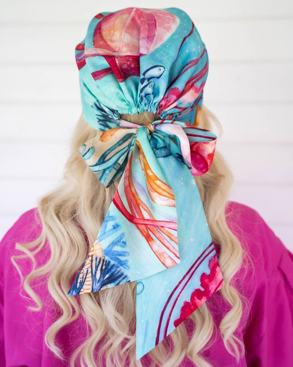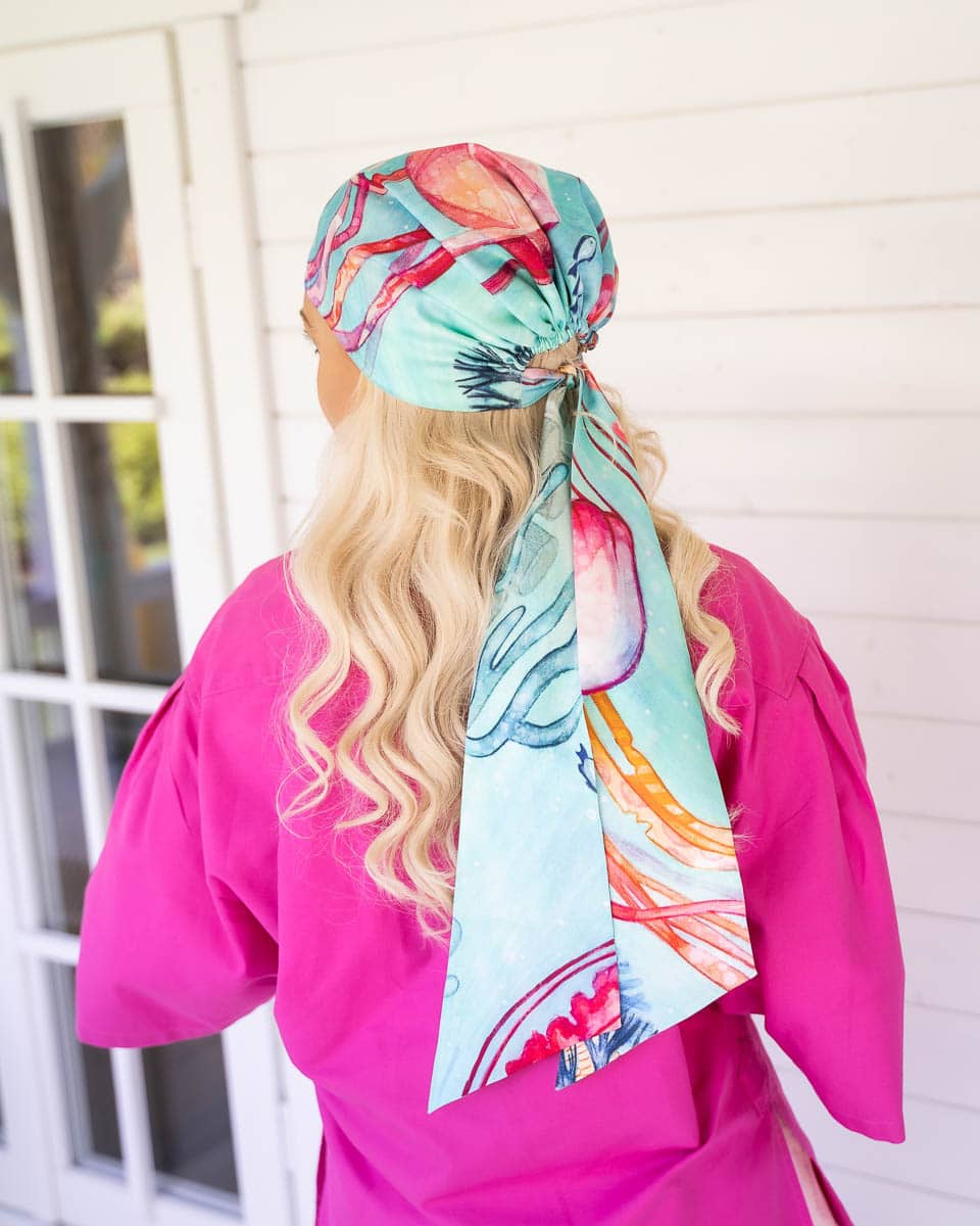 Dzięki gumce wszytej z tylu piratka bardzo stabilnie i komfortowo trzyma się na głowie. Wykończona długimi szarfami sprawi że wyróżnisz się z tłumu i poczujesz się wyjątkowo. Można ją na kilka sposobów: rozwiązaną lub wywiązaną w kokardę.