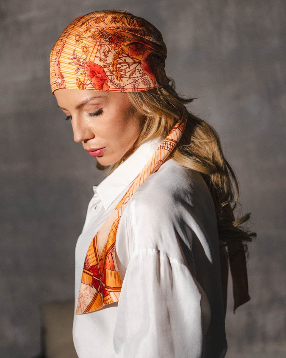 Jedwabna piratka na głowę Corsaro to idealnie skrojone okrycie na głowę, znakomite dla osób poszukujących szybkich, łatwych i wygodnych rozwiązań. W przeciwieństwie do apaszki nie musisz znać sposobów by ją wywiązać.