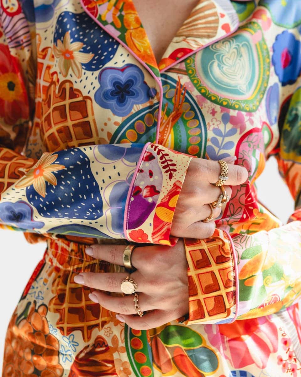 Całość dopełniają różowa wypustka oraz guziczki obleczone materiałem - drobne detale, które sprawiają, że ten komplet jest naprawdę wyjątkowy. To piżama stworzona nie tylko na spokojny sen, ale także na długie, przyjemne poranki przy filiżance kawy i ulubionym śniadaniu.