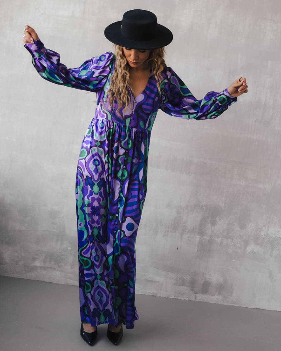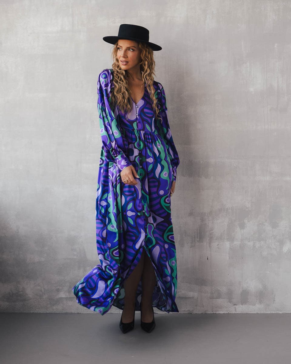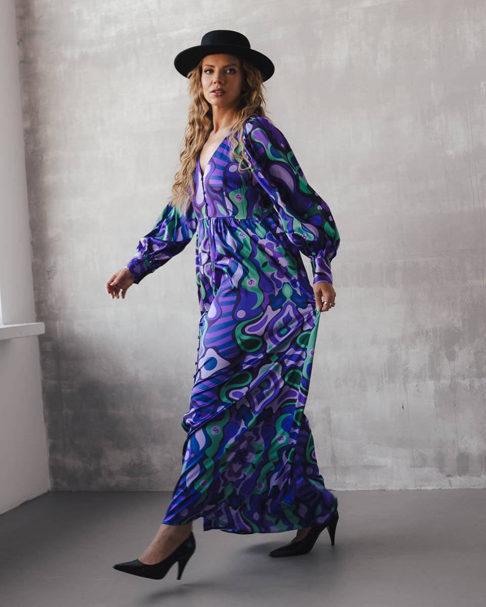 Długa, zwiewna jedwabna sukienka Etera to nie tylko ubranie, ale również wyraz klasy, komfortu i ponadczasowej elegancji, który towarzyszy różnym momentom życia, dodając im wyjątkowego uroku.