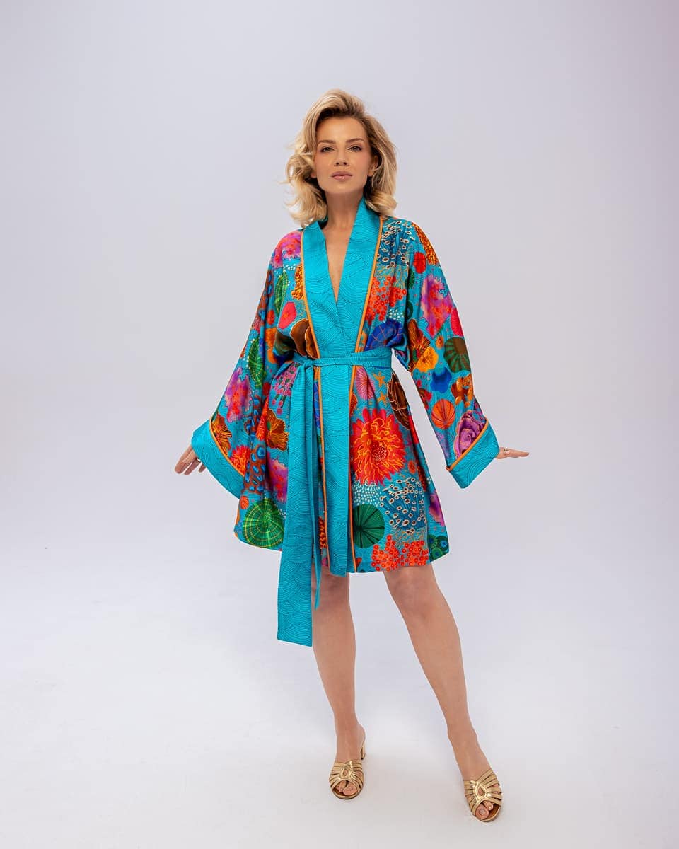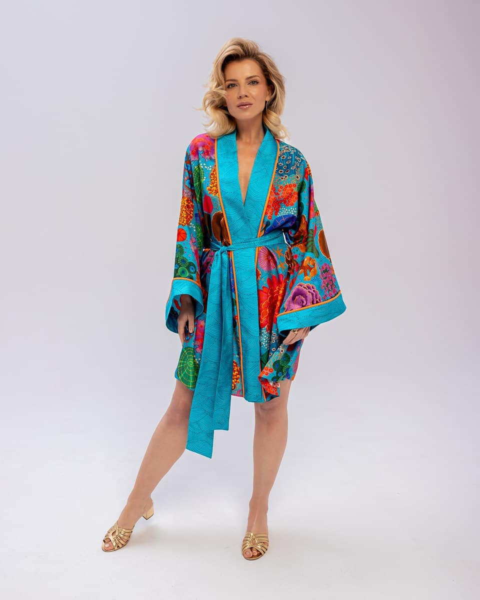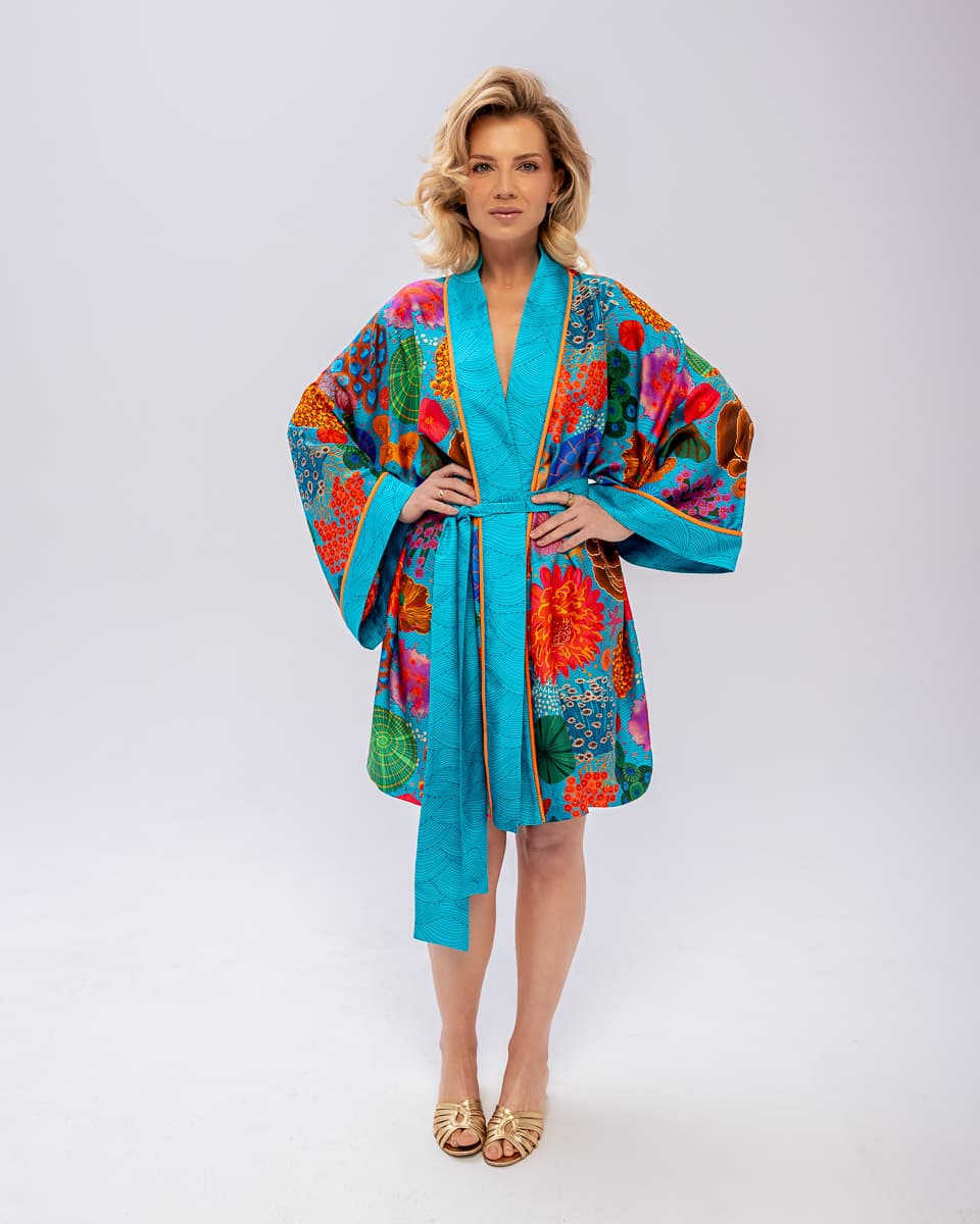 Miękki, szlachetny jedwab pięknie układa się na sylwetce, nadając całości lekkości i elegancji. Każde kimono jest unikatowe, dzięki czemu staje się nie tylko elementem garderoby, ale małym dziełem sztuki. Idealne dla osób szukających luksusu w codzienności i wyjątkowego akcentu w stylizacji.