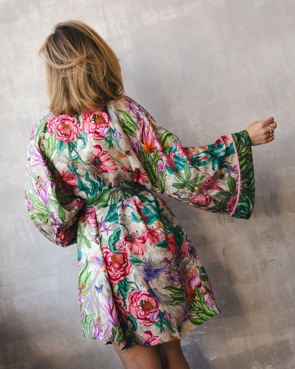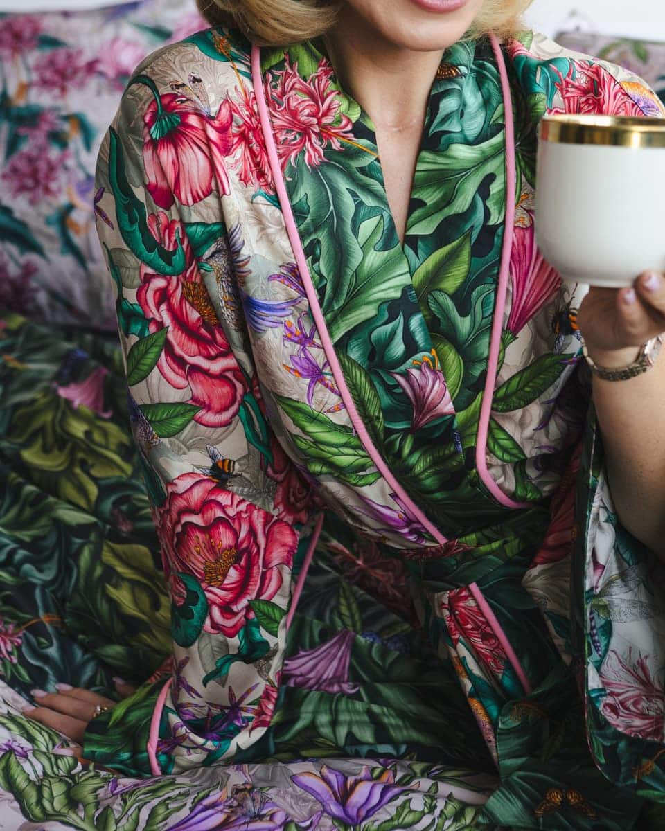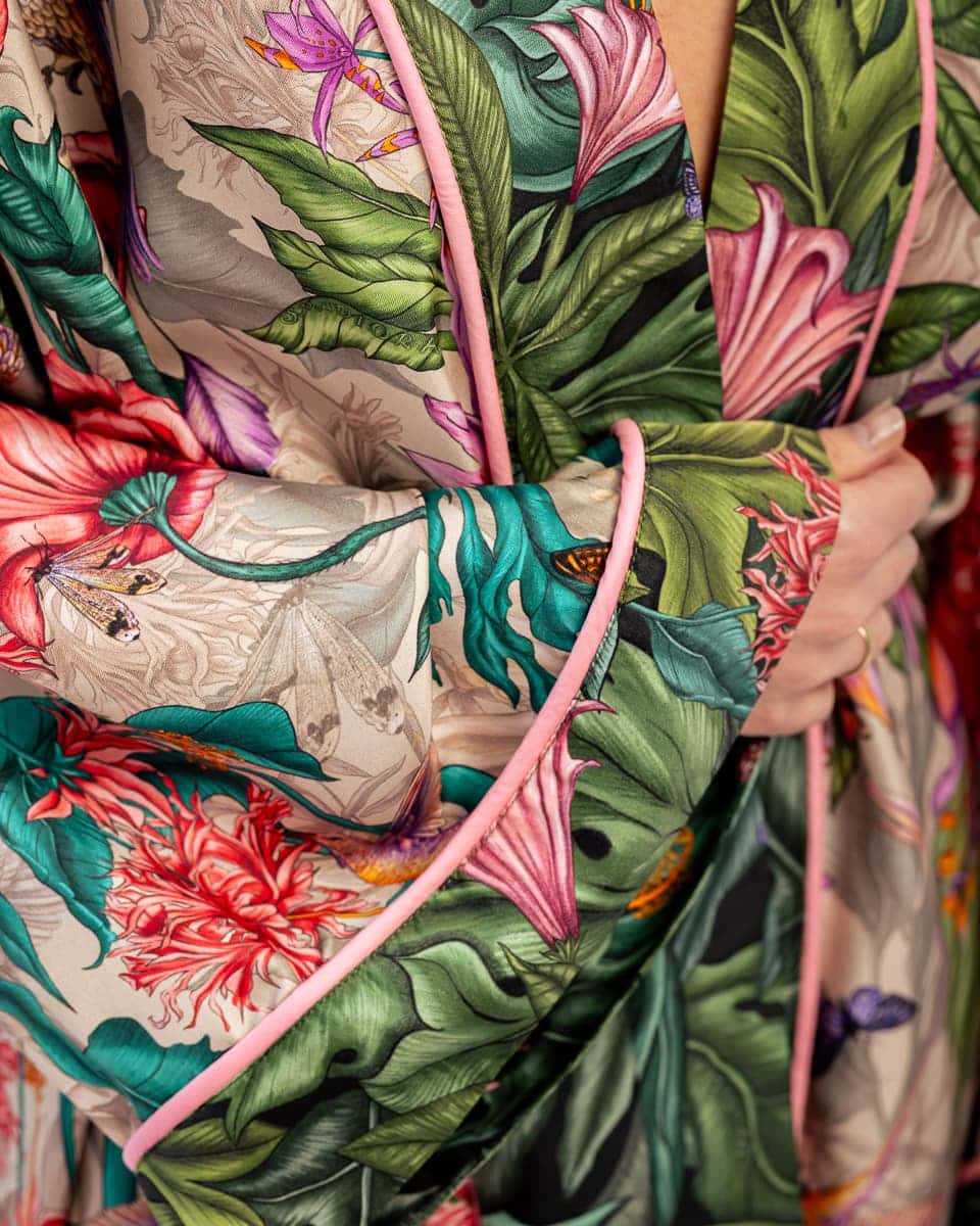 Dzięki właściwościom termoregulacyjnym jedwabiu nosząc nasze kimono poczujesz przyjemny chłód w upalne dni i komfortowe ciepło zimą.