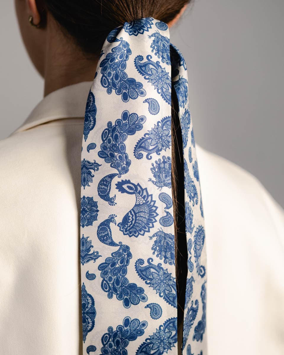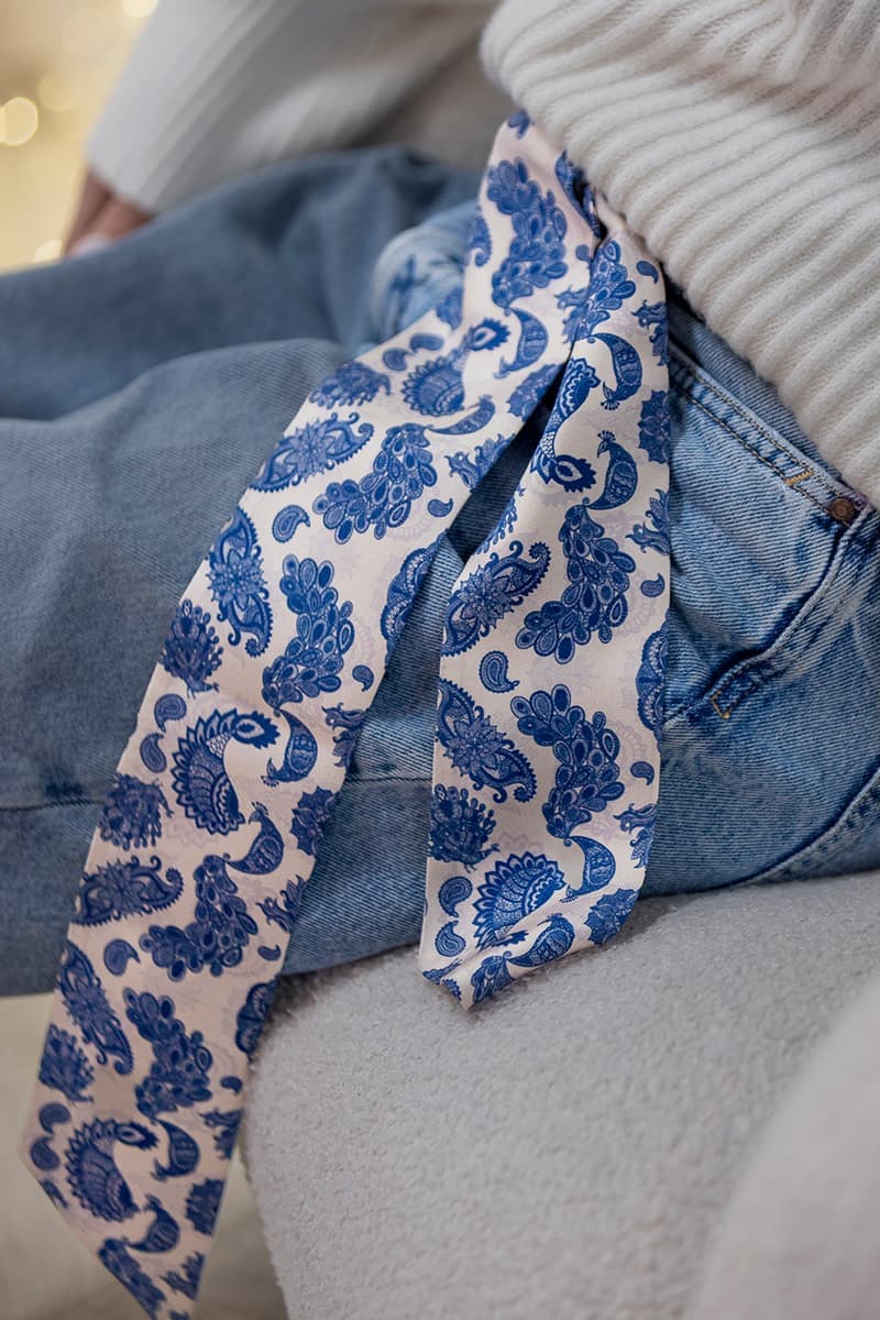 Kolejna w naszej kolekcji jedwabna wstążka typu Twilly z Waszym ulubionym wzorem "Duma" . To modowy dodatek który na świecie święci triumfy od kilku dobrych dekad.