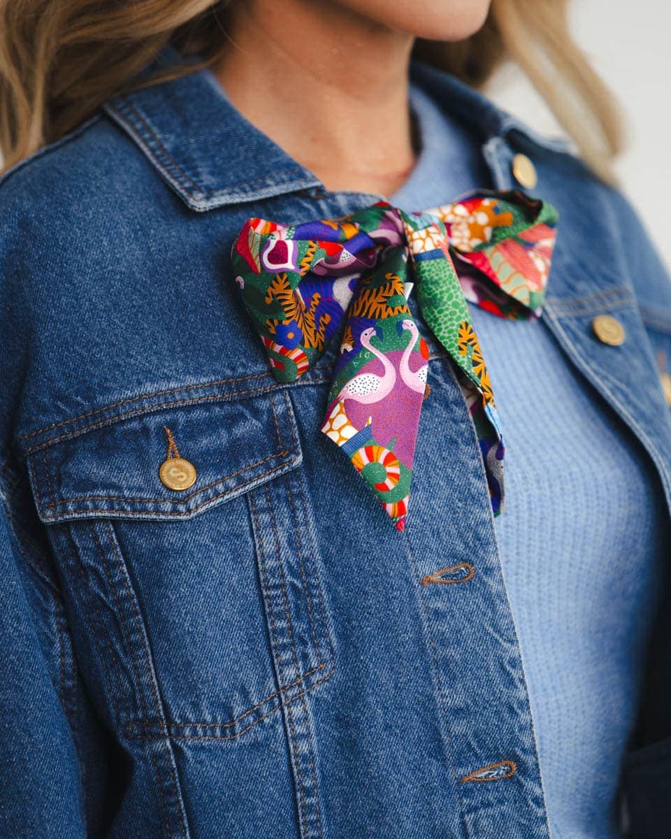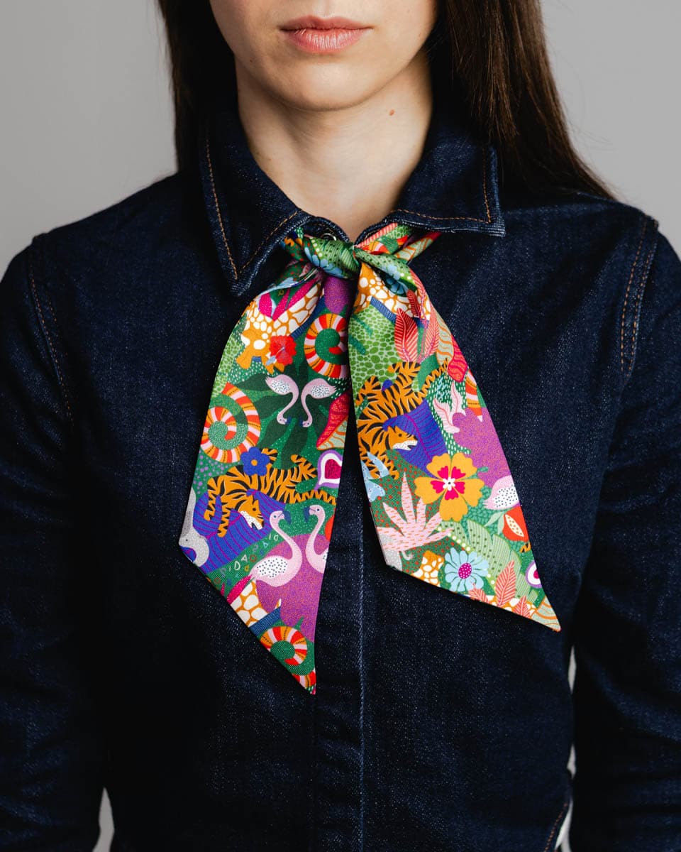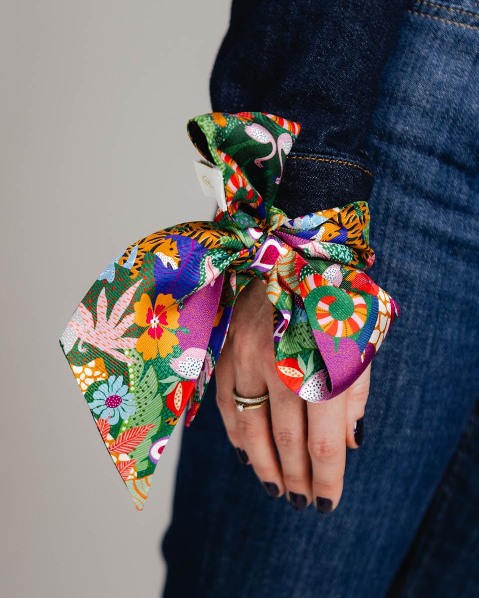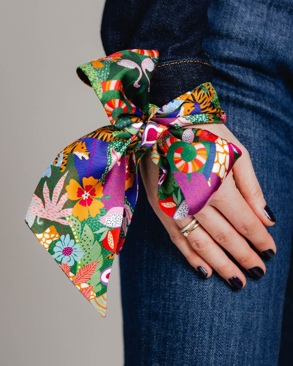 Wykonany z najlepszej jakości naturalnego jedwabiu o splocie twill doda uroku każdej torebce, fryzurze czy koszuli.