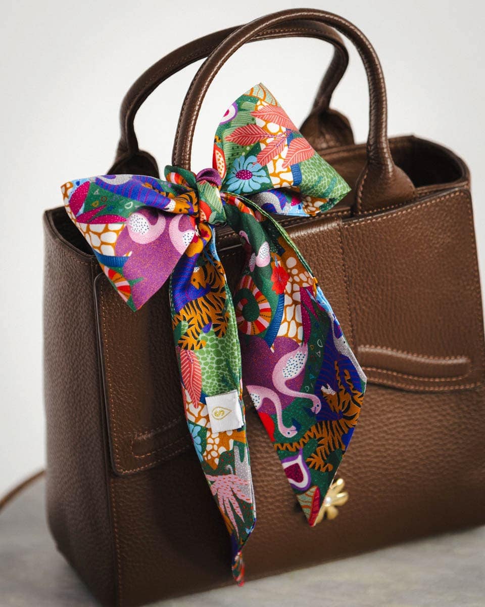 Kolejna w naszej kolekcji jedwabna wstążka typu Twilly z Waszym ulubionym wzorem "Safari" . To modowy dodatek który na świecie święci triumfy od kilku dobrych dekad.